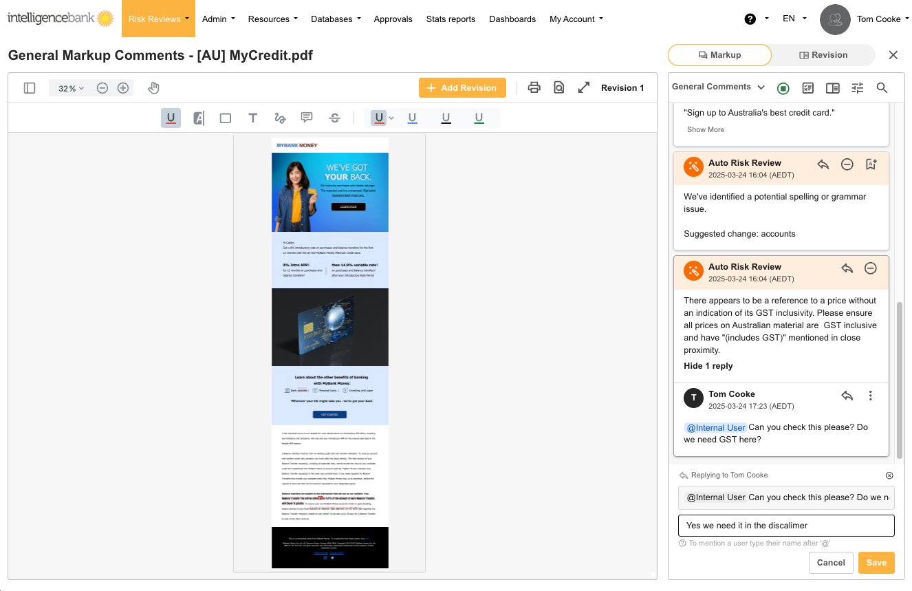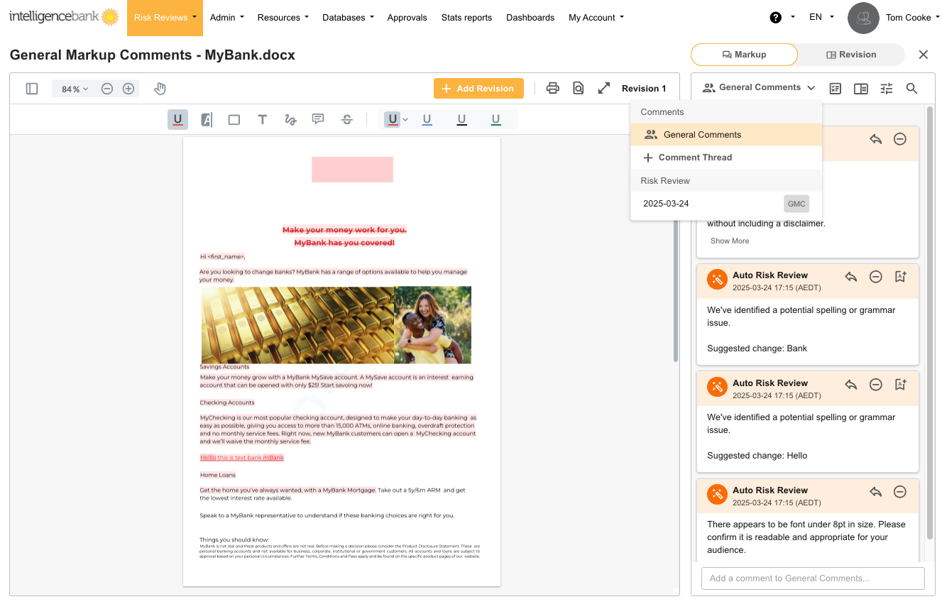 Click on a Risk Review thread to switch to that document revision and associated Risk Review