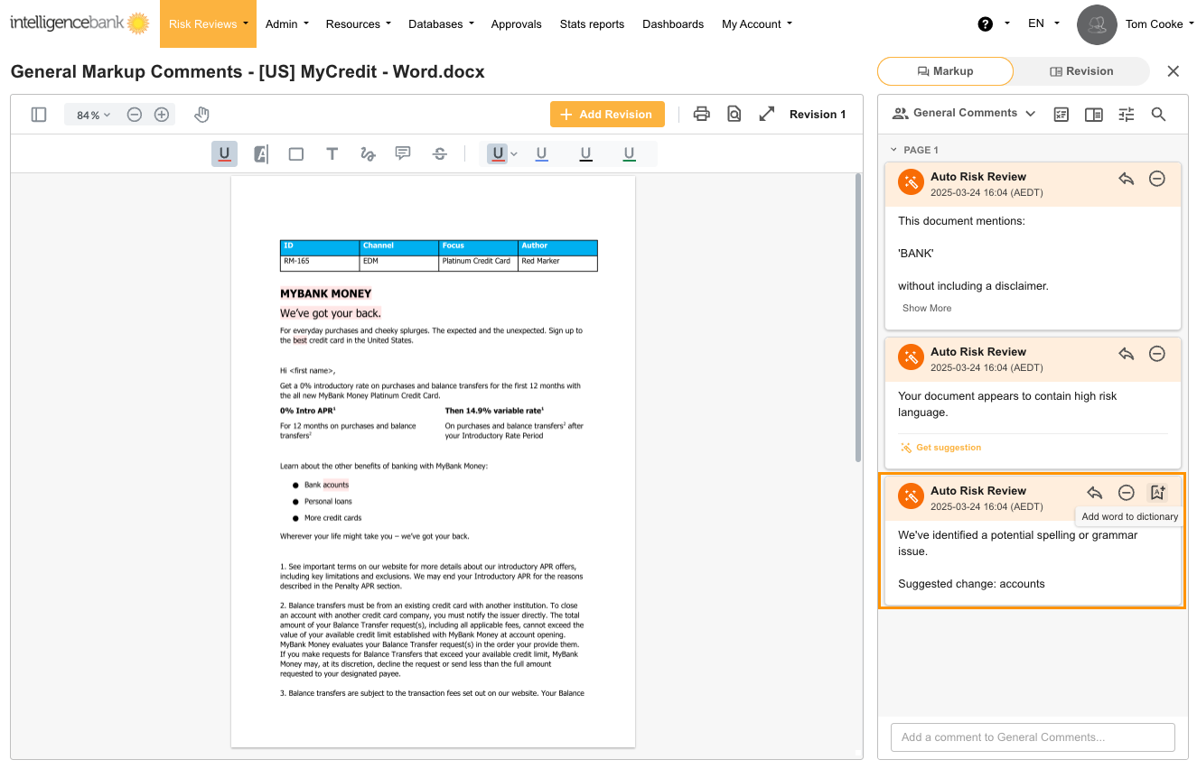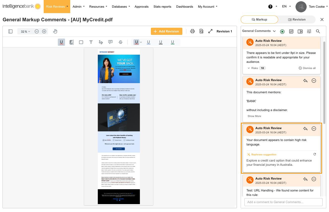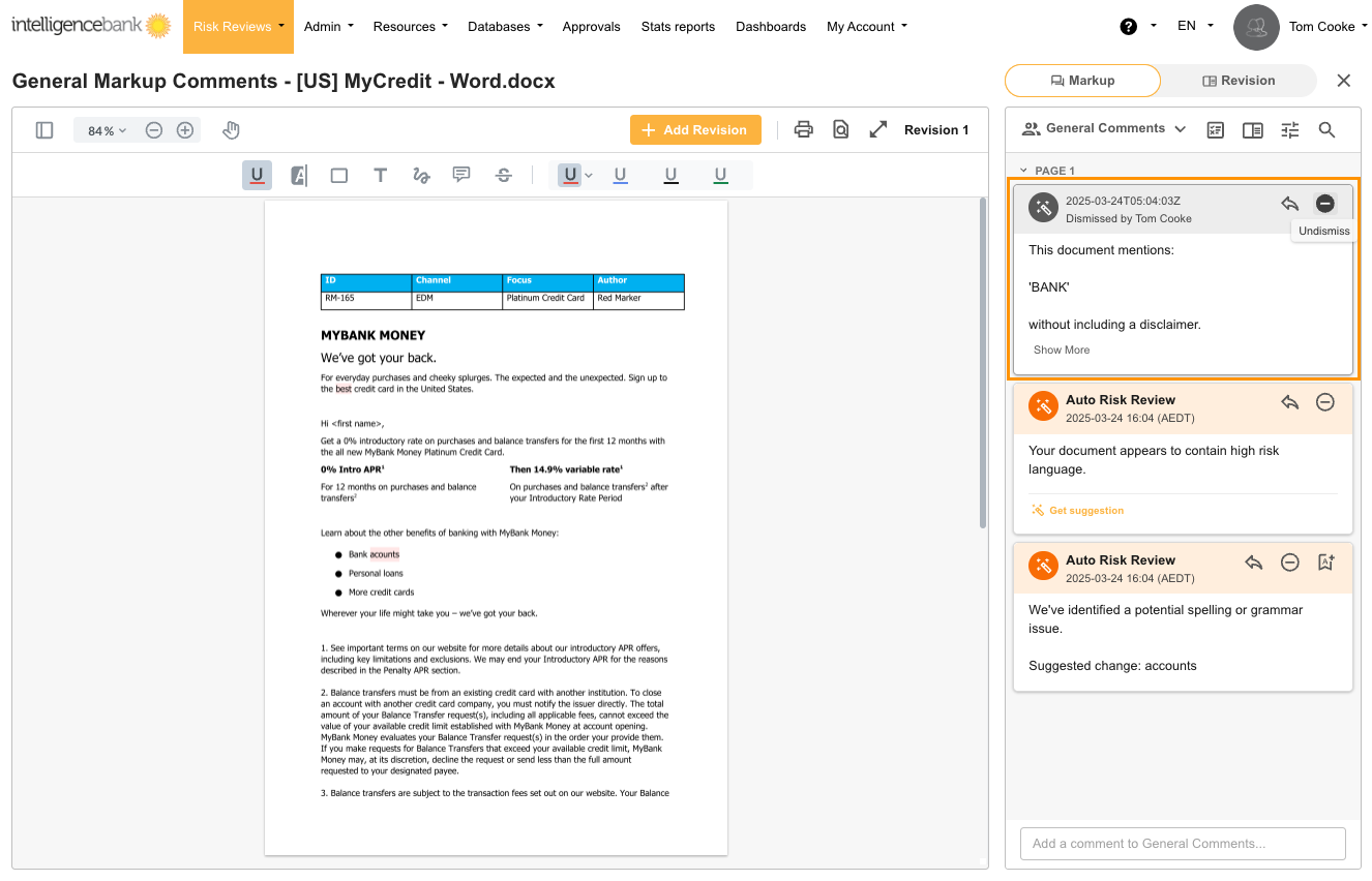 - All risk reviews for each revision are preserved in the Review Comment Threads
