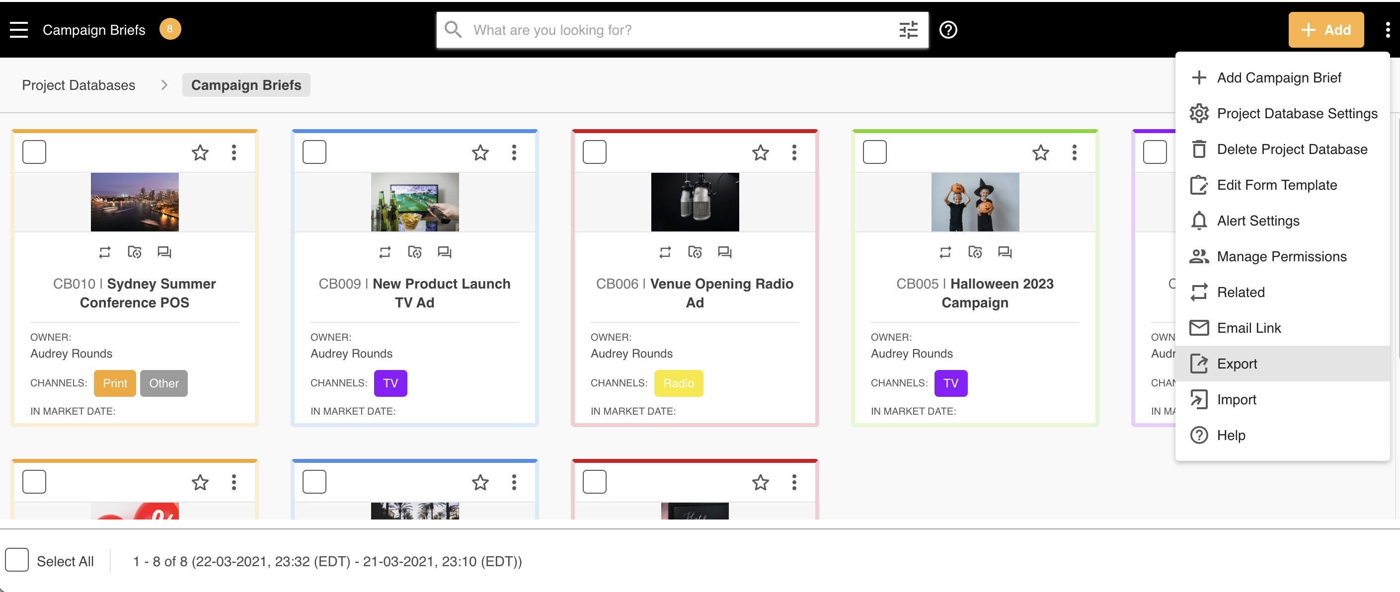 As an Admin, you may need to export a list of all your briefs, tasks, or project records so you have them in a data report format.