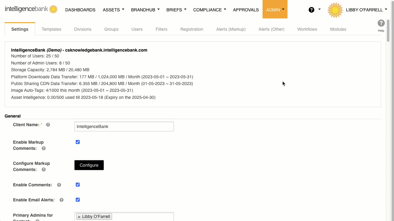 - Navigate to Admin > Settings