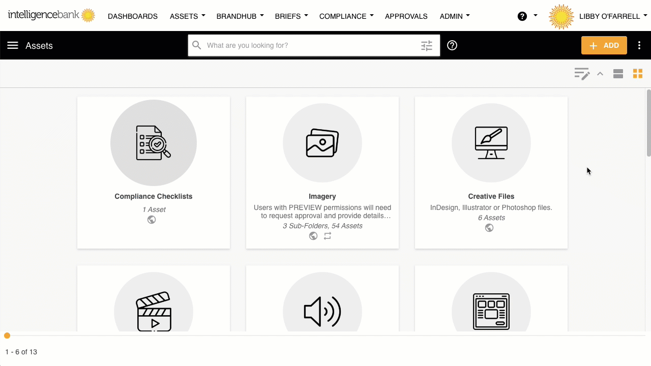 Once assets are uploaded into the DAM, users can search and retrieve specific assets utilizing the search bar located at the top-center of your asset library.