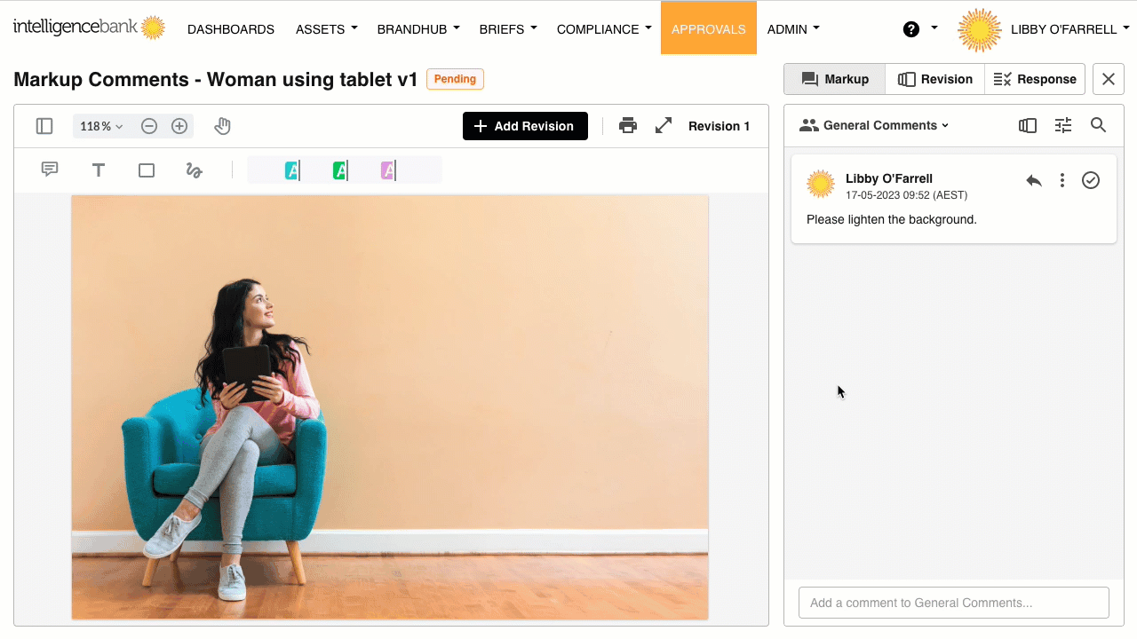 You might need to edit or delete a comment you’ve made while collaborating on or proofing an asset under review within the DAM. This might come up if, for example, you realize after you’ve saved your comment that there’s a typo in it. Or maybe your comment is unclear and could be rephrased, or is no longer relevant to the proofing process.