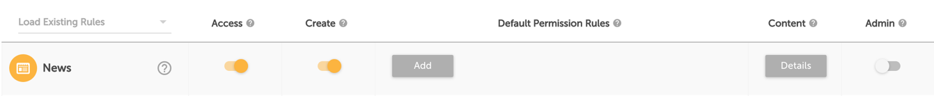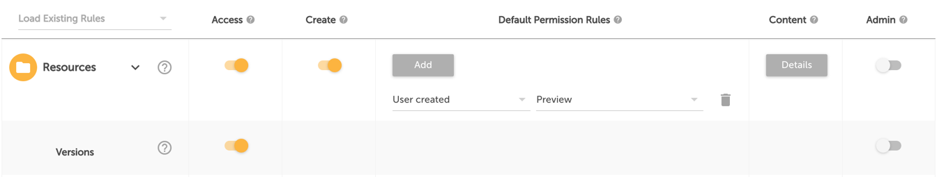 You can also apply custom permissions details by clicking the Details button under the Content column. These custom permissions will override any default rules applied (also referred to as General Rule).