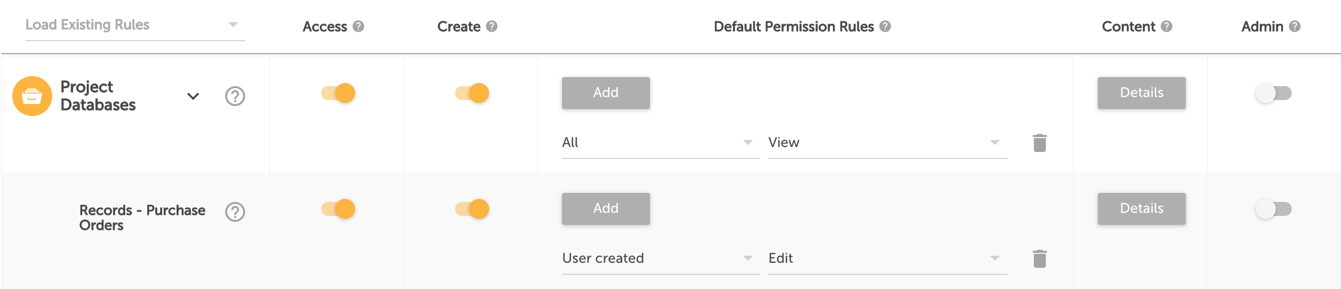 NOTE: Giving access to a database does not give access to its content. Separate permissions are required on the Database's corresponding Records module (see below).