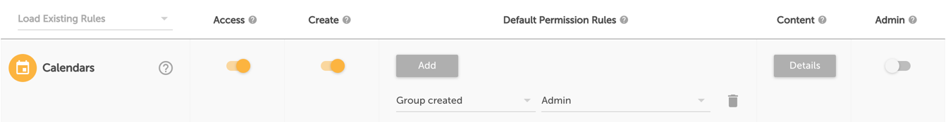 - Admin: This gives users the ability to access the entire Calendars module and its content independently of other rules or custom permissions. This is the highest level of permission.