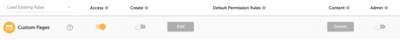 - Admin: This gives full access to the custom pages area and its content, independently of other rules or custom permissions. This is the highest level of permission.