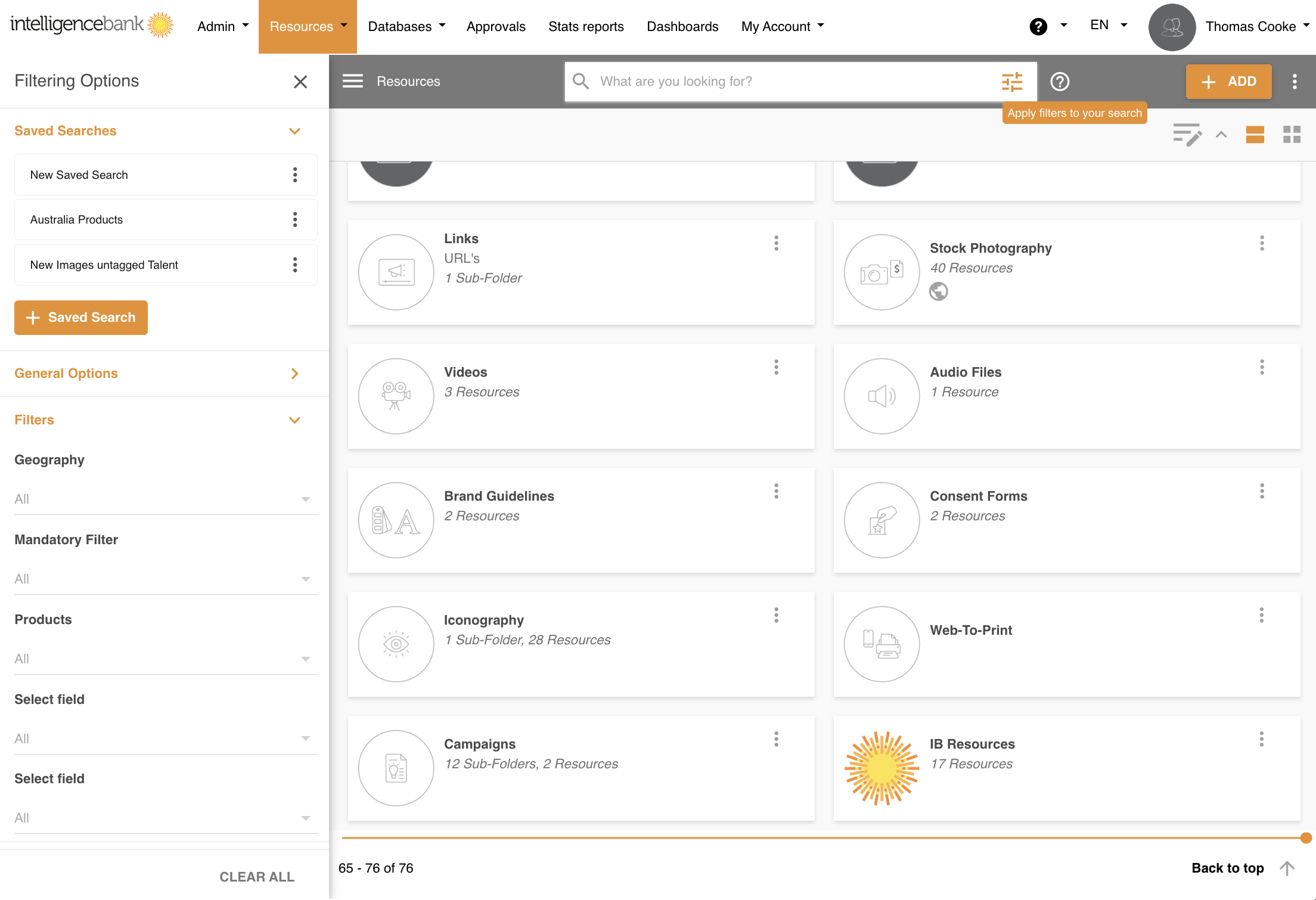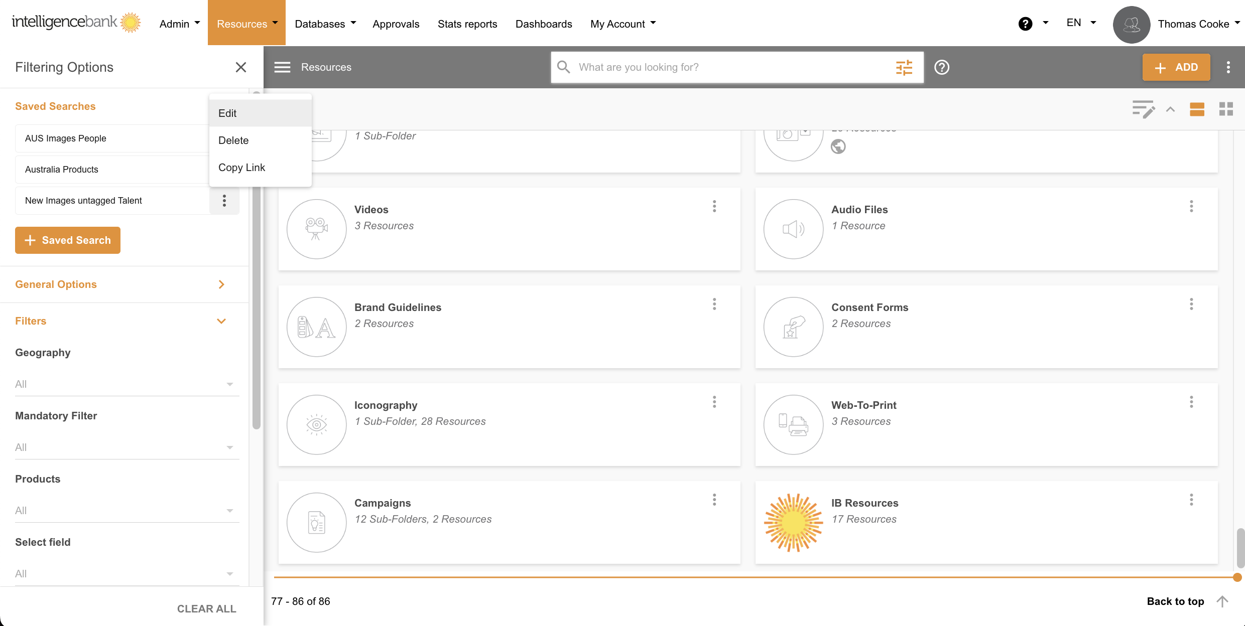 - The resources displayed will be based on the criteria and search term within the Saved Search