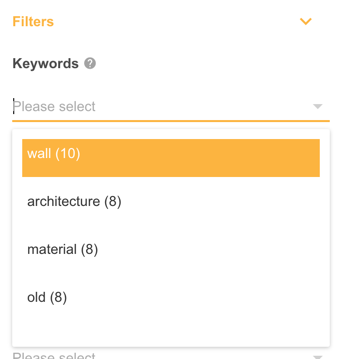 In the example above you can also see a count next to each keyword, for e.g. wall (10). This is the count of visible Resources that has that keyword tagged against it.