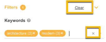 3. To clear your Filters and return to the folder, either click the X icon next to the Keywords, or click Clear to remove the Keyword Filter.