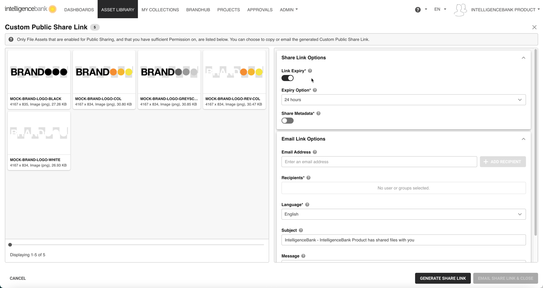 Once the Share Options are set, click the Generate Share Link button at the bottom right of the screen, and your link will be instantly available for copy. You can also choose to email it directly from the overlay.