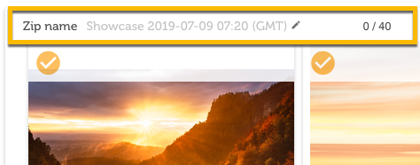 If you wish to customise the name of your download, ie the name of the zip file that will be automatically downloaded to your Desktop, you can add a custom name (of up to 40 characters in length).