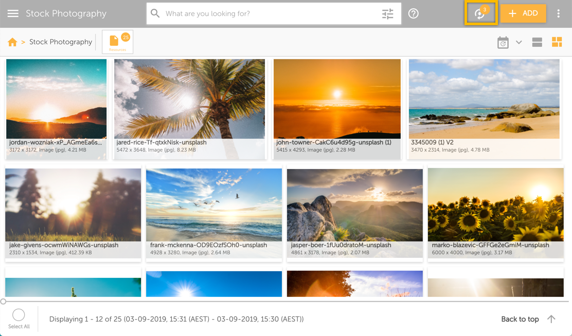 Once you've clicked Download, the overlay will close and take you to the screen where you selected your Resources for Download. Whilst this is happening, your Zip file is being created (ie the Job is being processed). Once this process is completed, the file with automatically be Downloaded to your device, according to your browser's default behaviour.