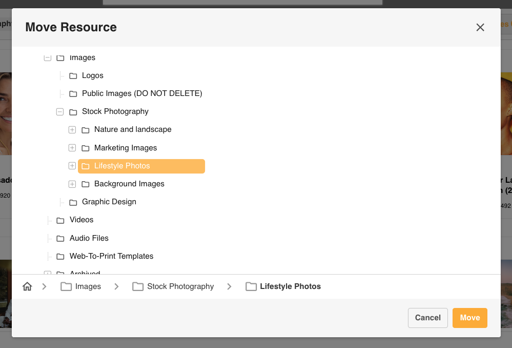 You can then choose to go to the folder the resource/s was moved to, or stay in your current folder.