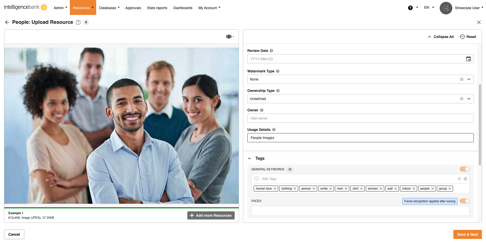 The Image Facial Recognition feature automatically attributes tags to images, scanning for relevant tags that match the image.