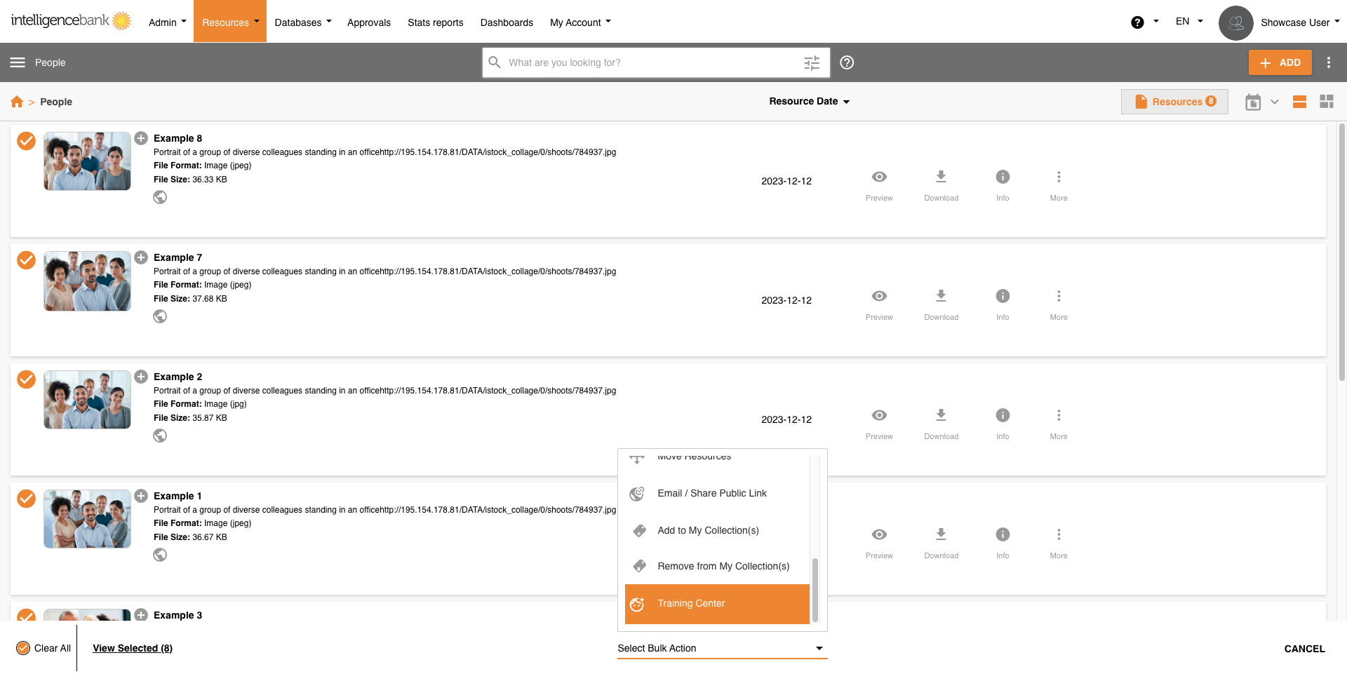 You can select multiple resources and then use the Bulk Action - Training Centre option to bulk train unknown faces.