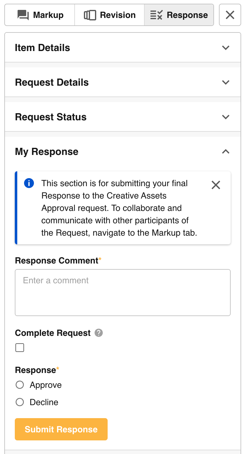 From here, users can add Markup Comments, add Revisions or to respond to the approval request.