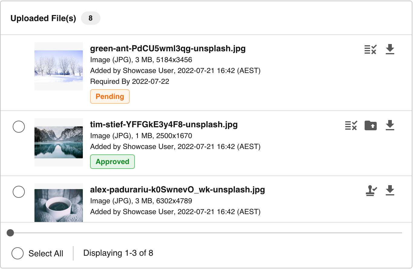Approval may also be requested in Bulk, for multiple or all saved files within the Multiple Upload field.