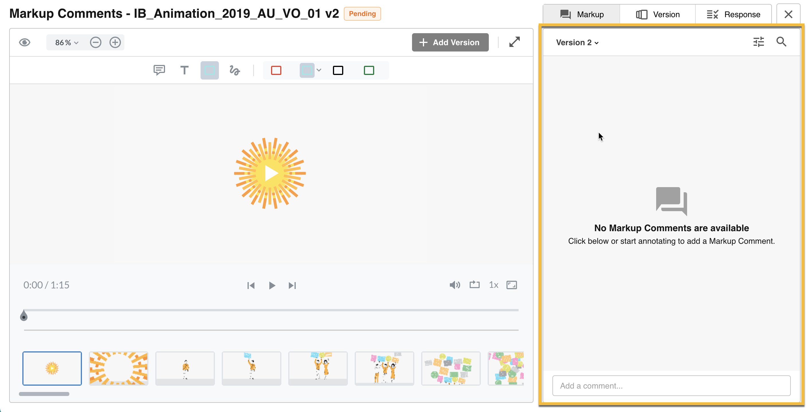 Other Markup Comment articles available include: Markup Comments Overview, Markup Comments Support, Access & Restrictions, Markup Comments & Annotations, Video Markup Comments & Annotations, Add New Versions / Revisions in Markup Comments, Instant Alerts (Markup Comments)