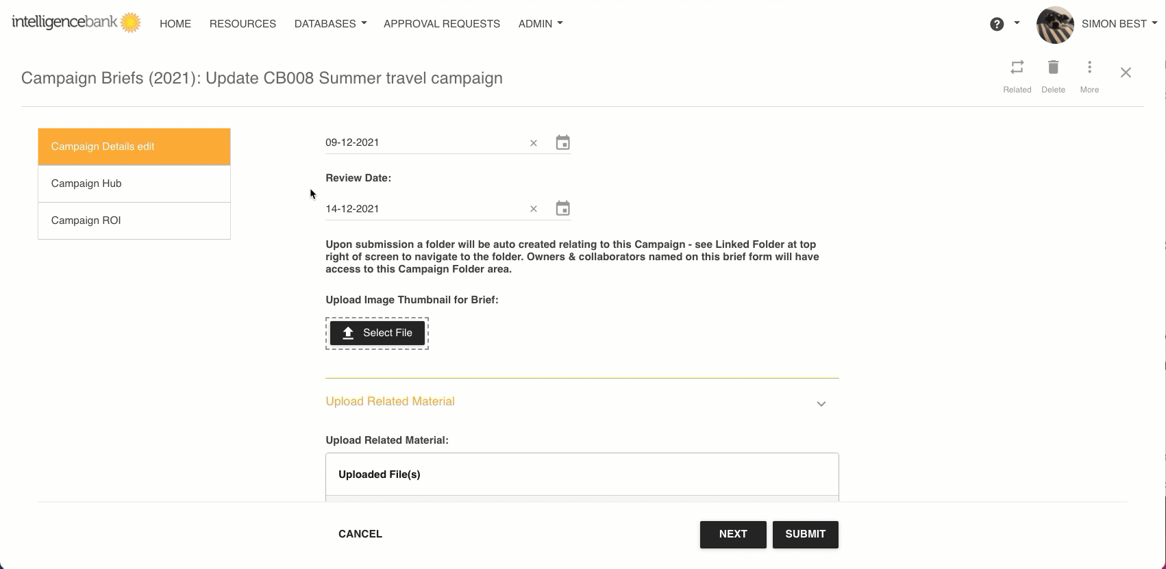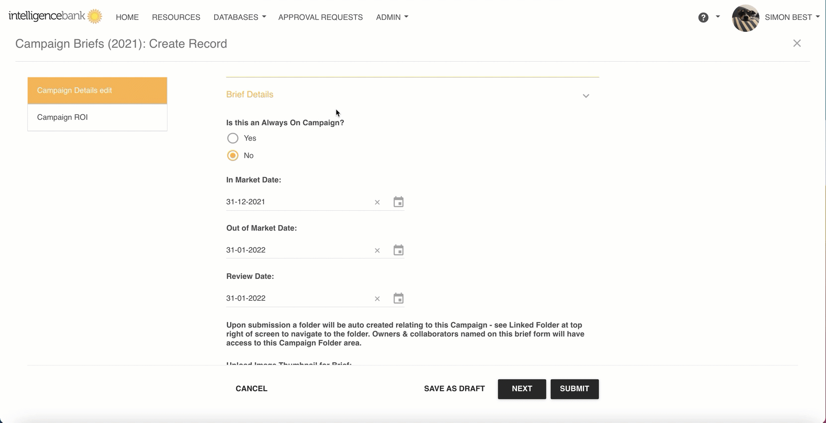 - The word ‘Record’ here will display as per that Database’s custom record name (such as ‘Linked Brief’ etc)