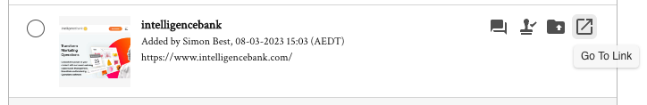 Once saved in the field, a 'Go To Link' action icon will be available for users to open in a new tab. Or users can click the thumbnail to Preview the web page within your IntelligenceBank platform.