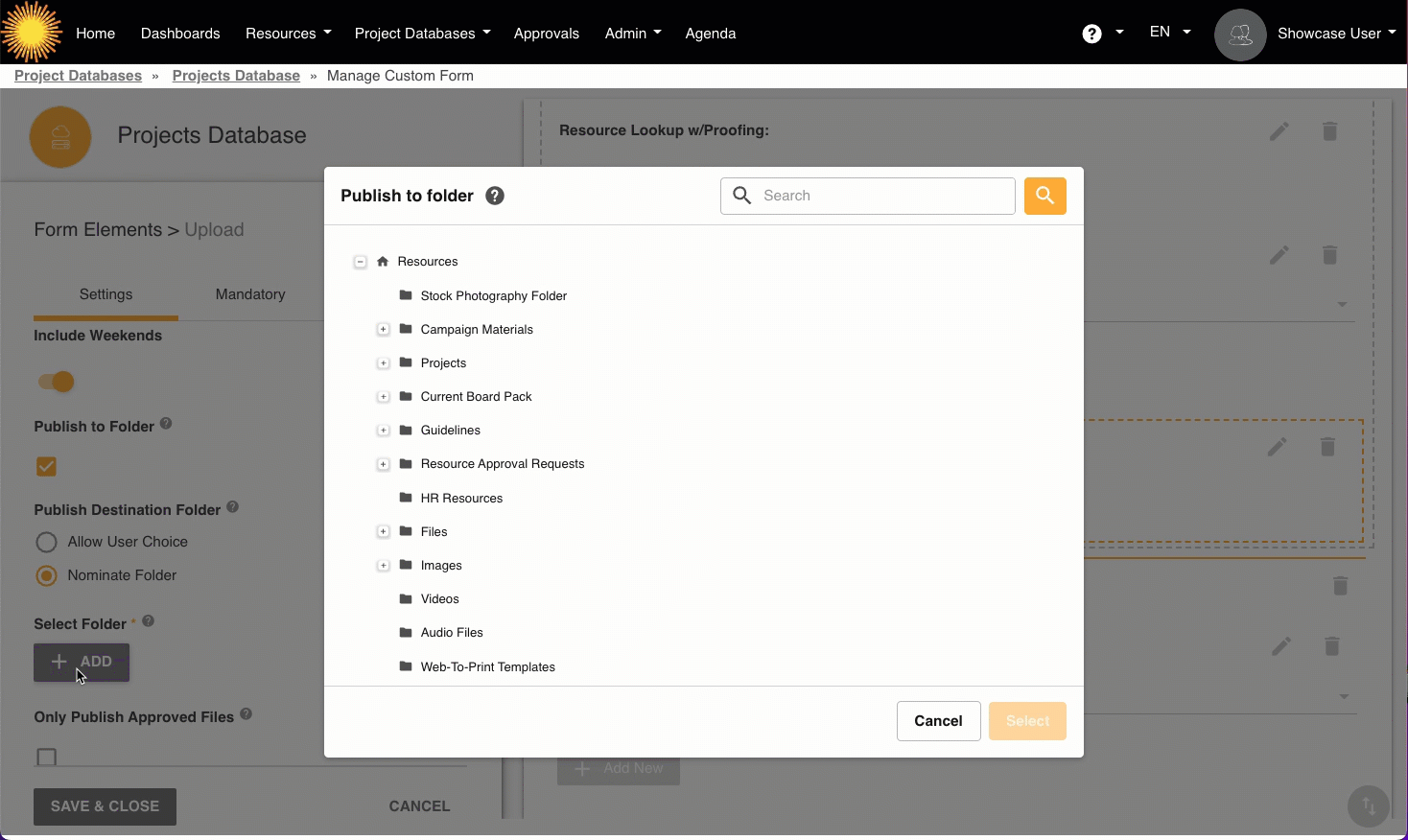 - Nominate Folder - with this option the folder destination is set in the form builder and 'locked' (users will only be able to publish into the nominated folder)