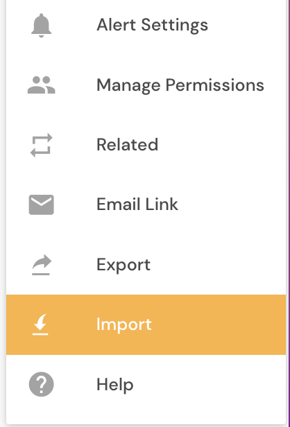 Those with relevant Database Manager permissions will see the Import option available in the database action menu: