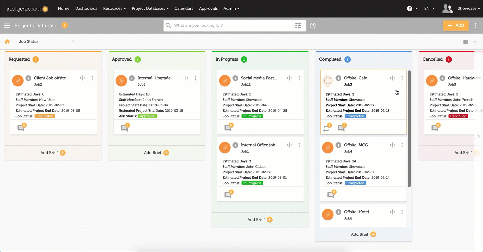 Two of the key aspects of a Kanban view is the ability to view your cards in order of priority and easily update the status of an item as the user progresses through the workflow. Both of these are handled on the Kanban view within the Databases module.