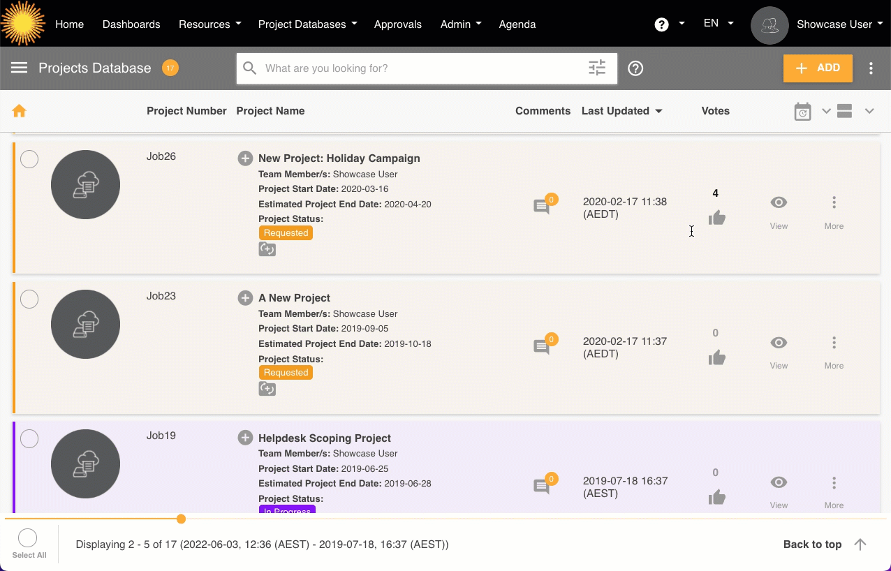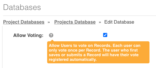 When enabled, users can vote on records they can view. This would be of benefit where a Database is being used as an 'Ideas Portal' or in planning upcoming work that requires input from others in terms of prioritisation feedback.