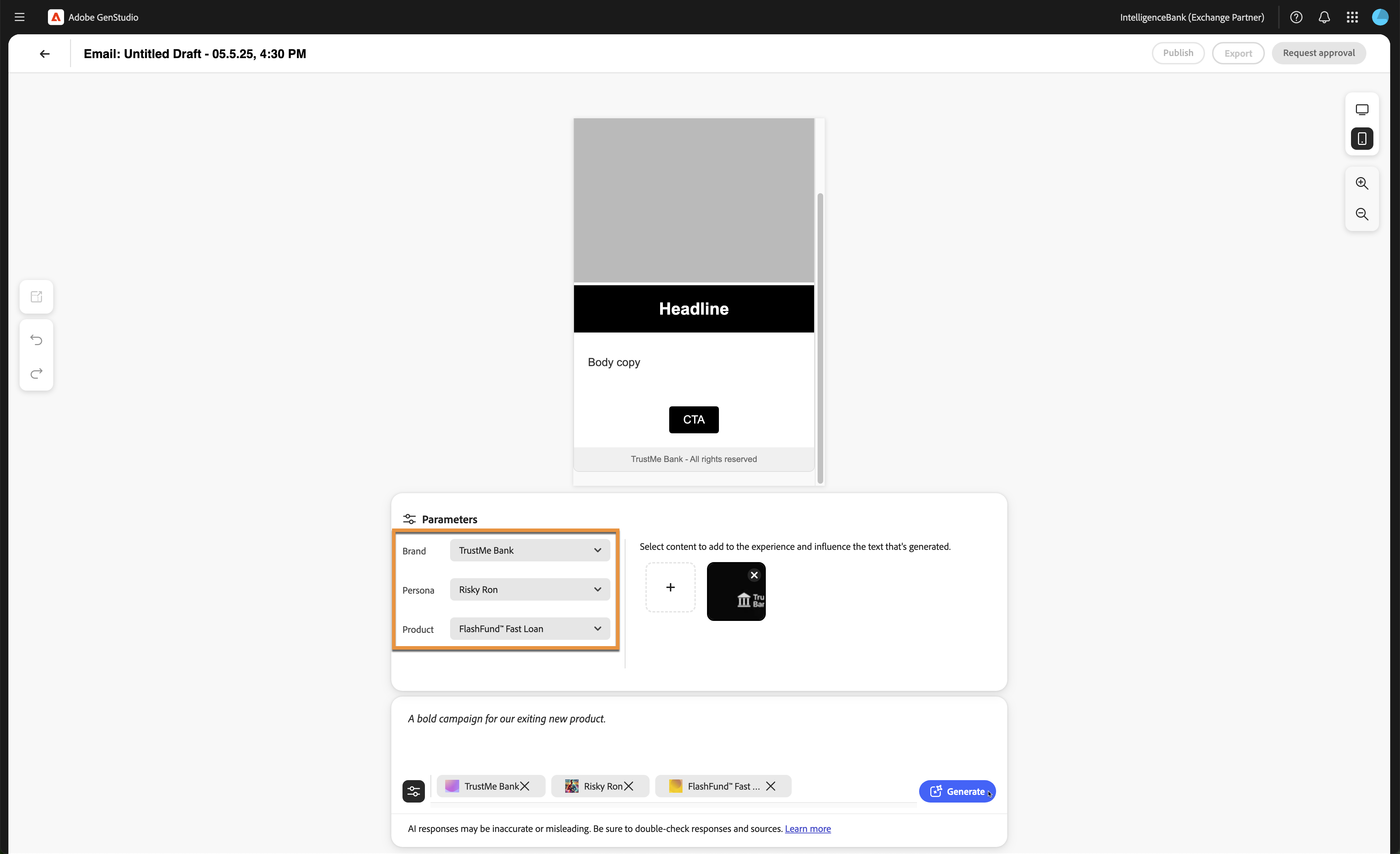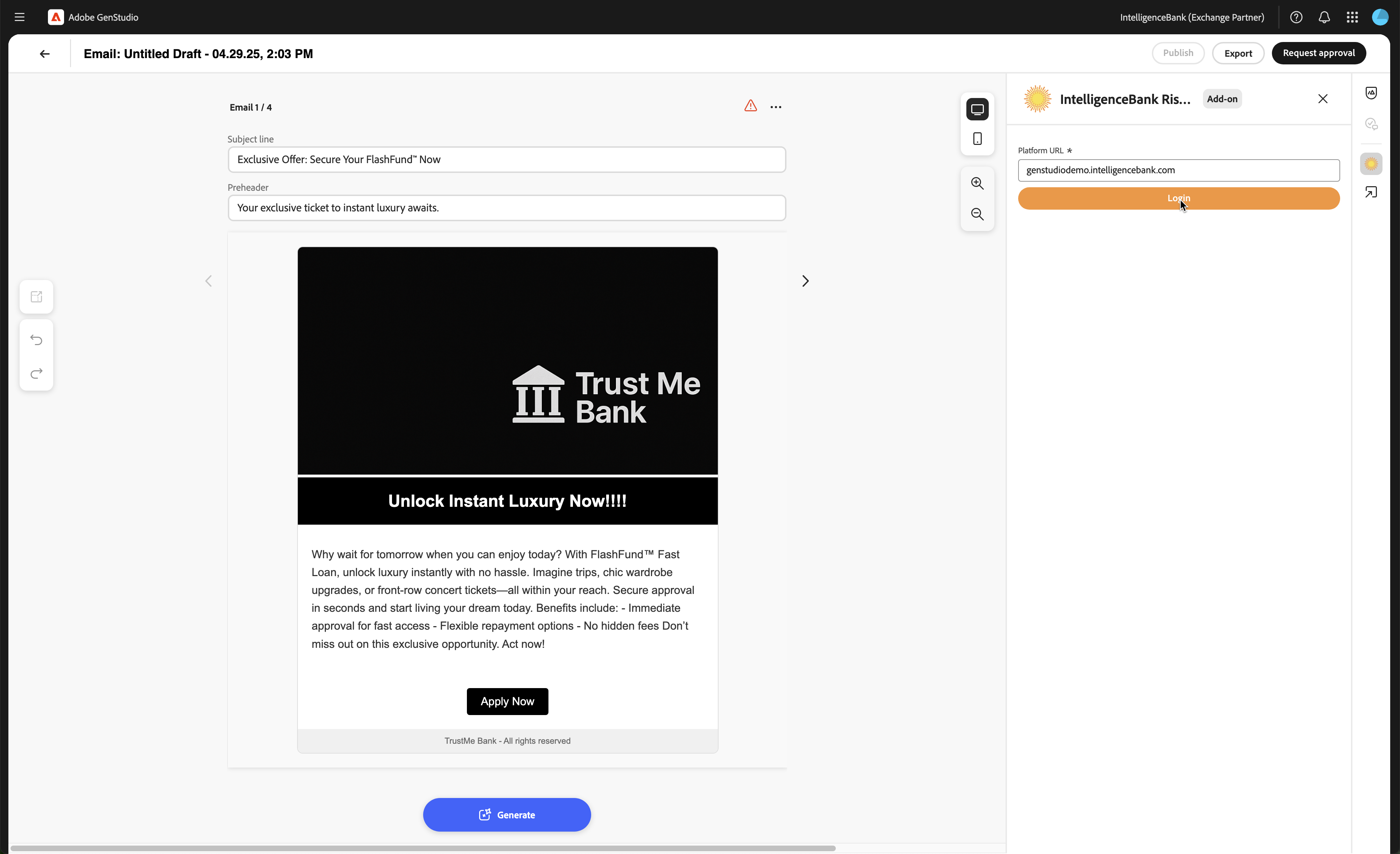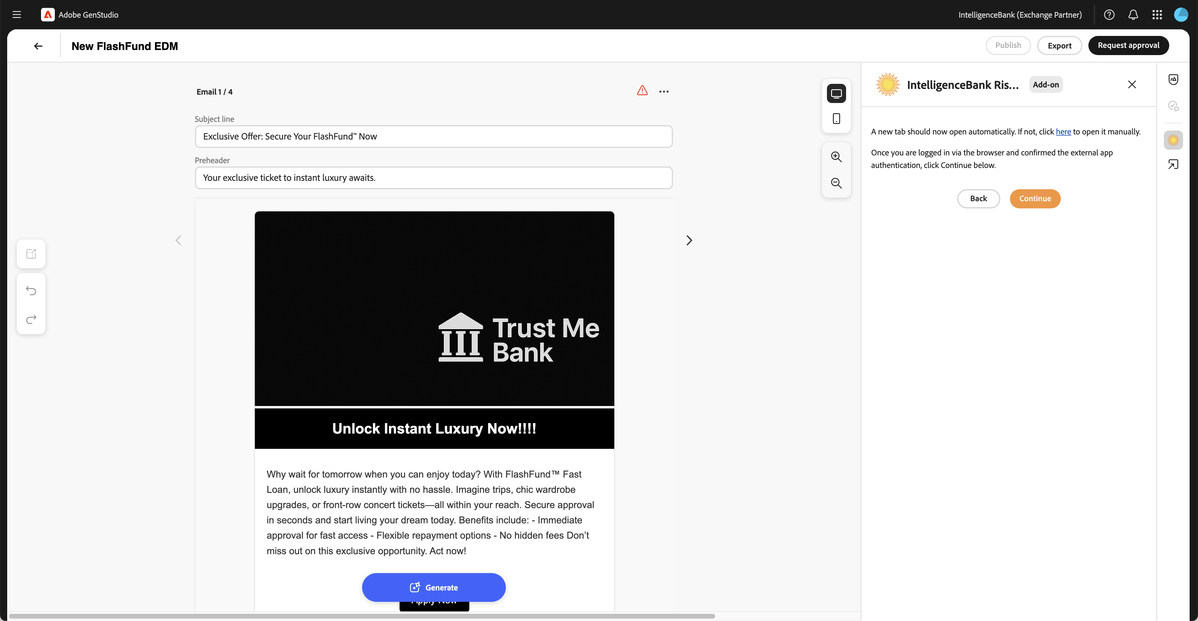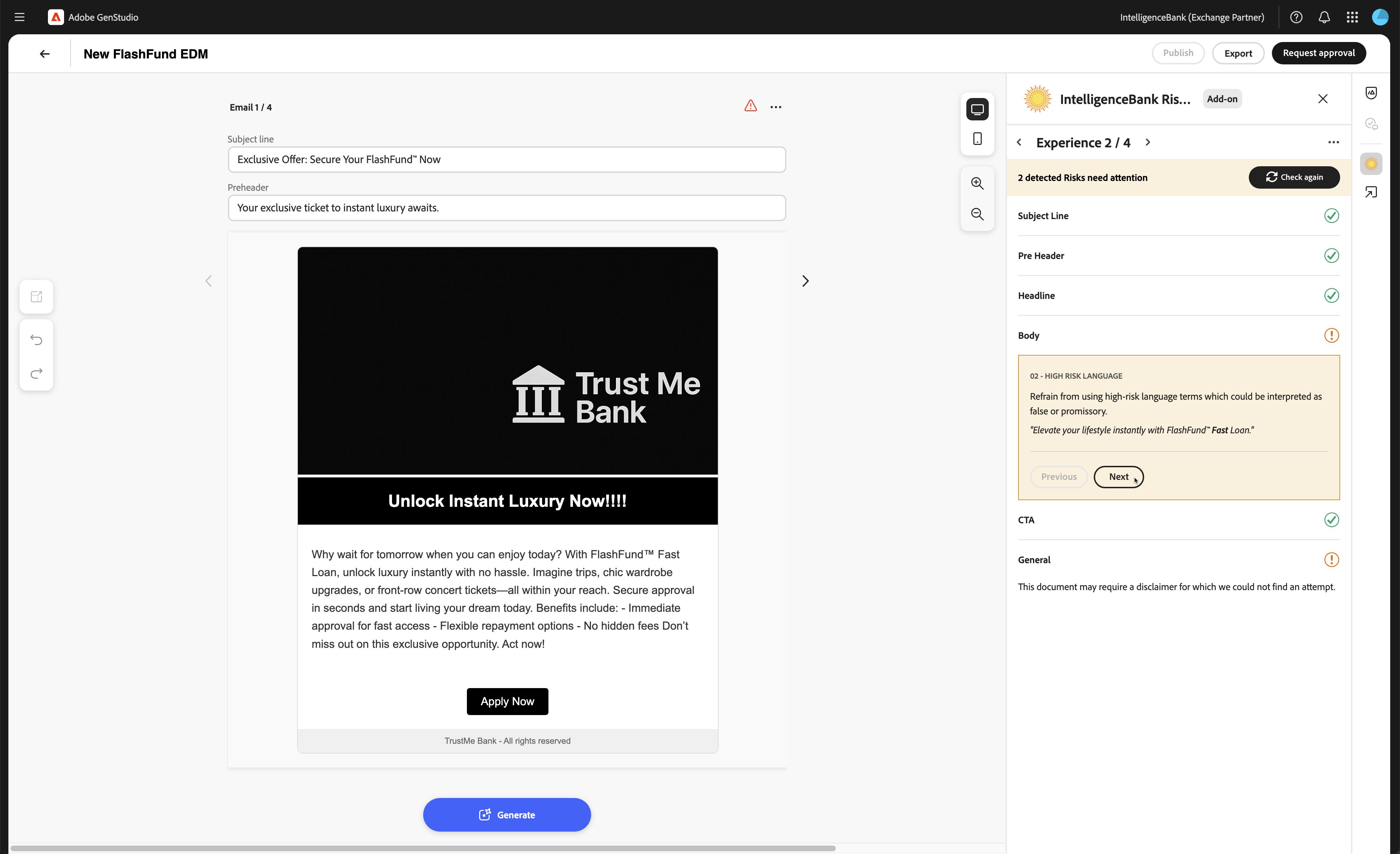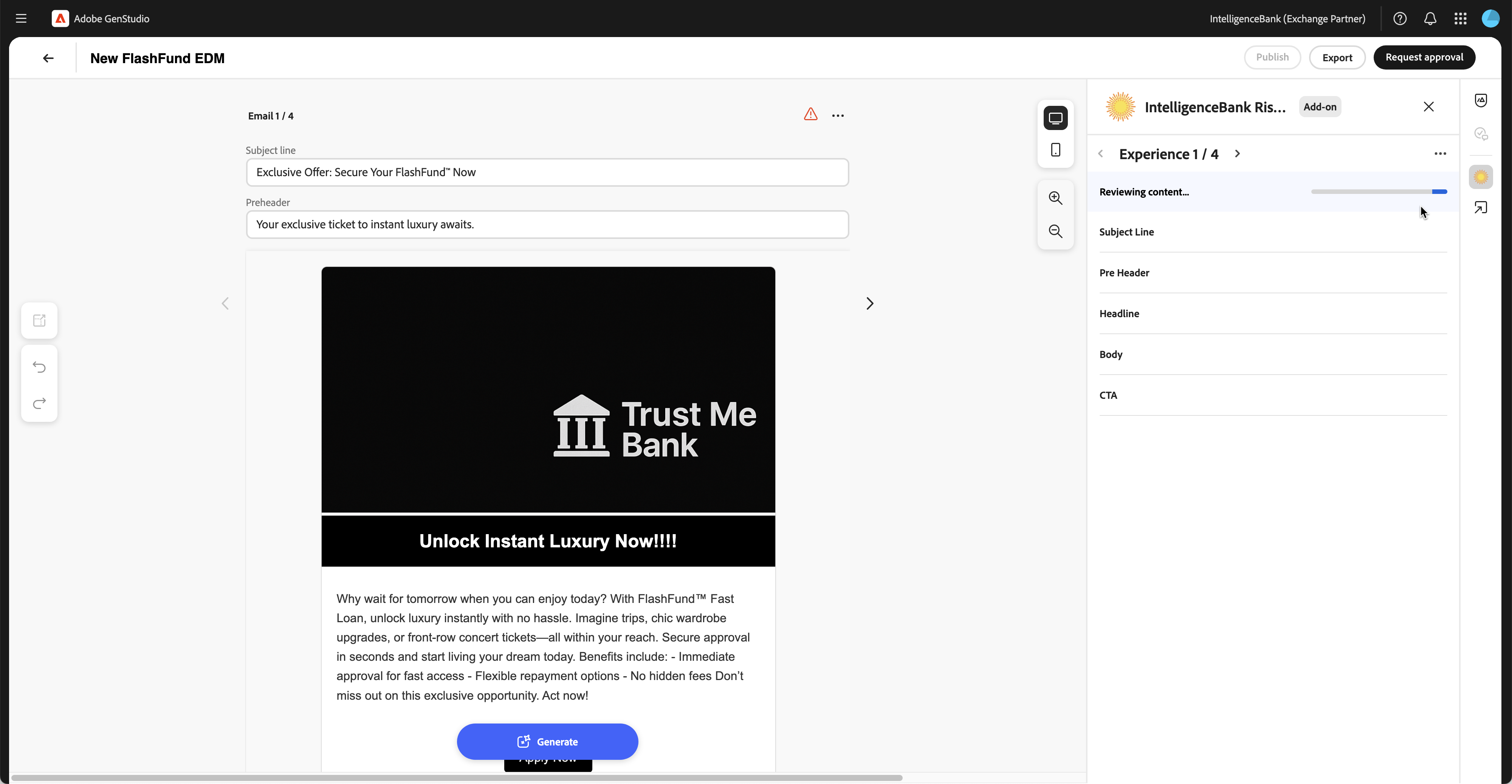 IntelligenceBank Content Risk Reviews is the ultimate solution for creating legally compliant, AI-generated content directly within Adobe GenStudio for Performance Marketing.