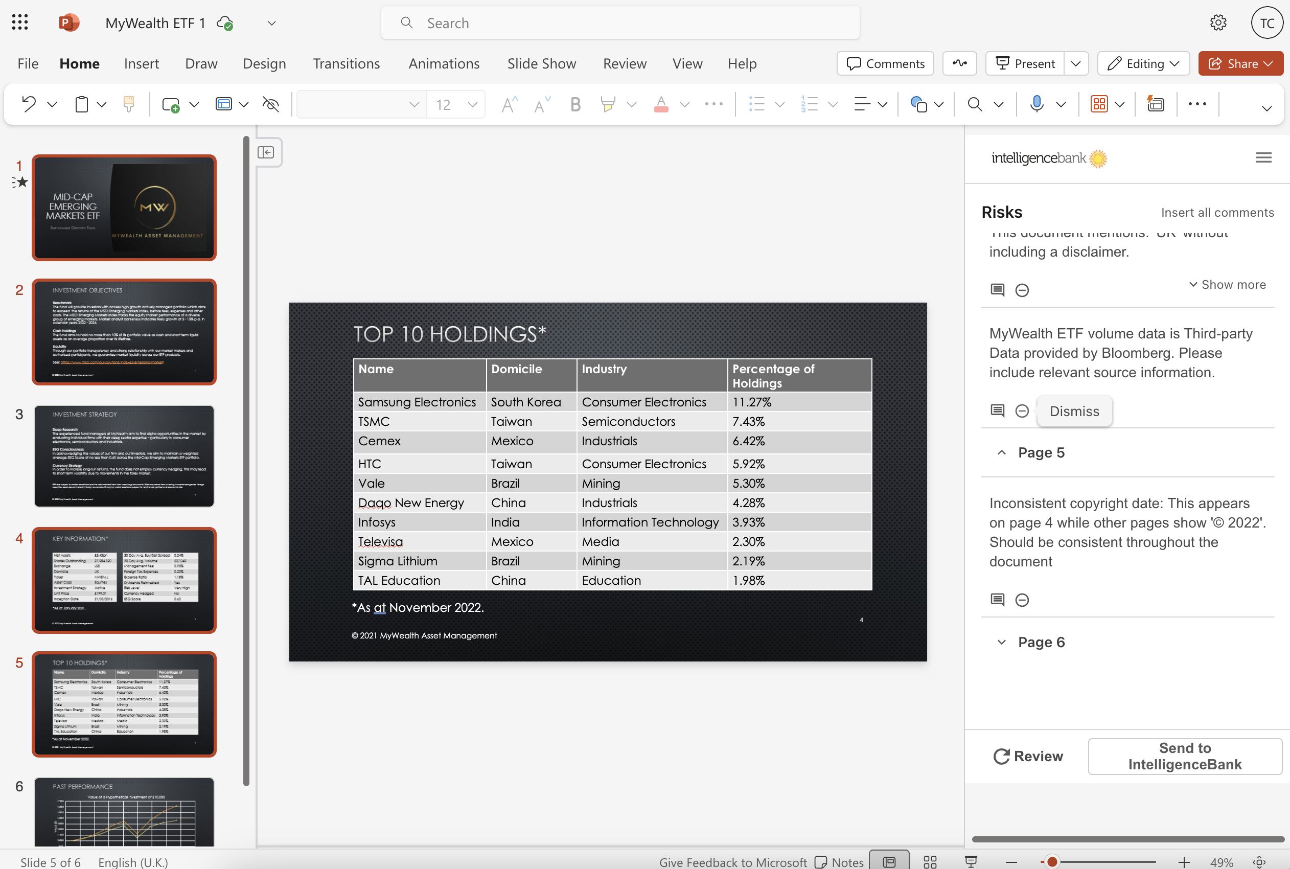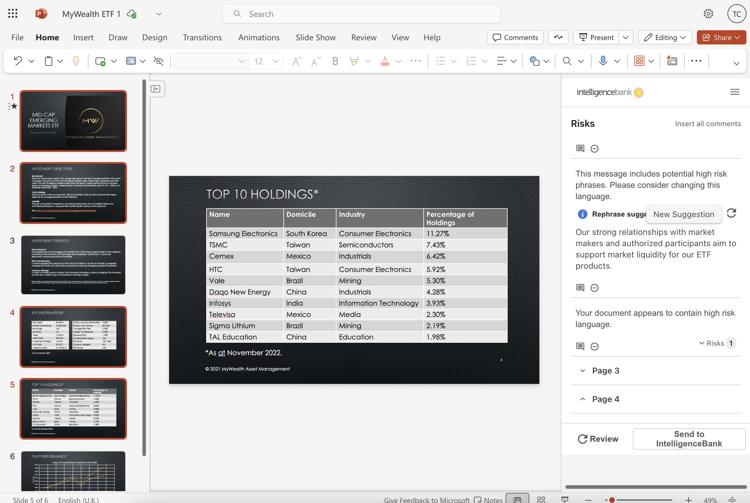 Learn how to effectively manage, resolve, and track risks identified across your PowerPoint presentations.