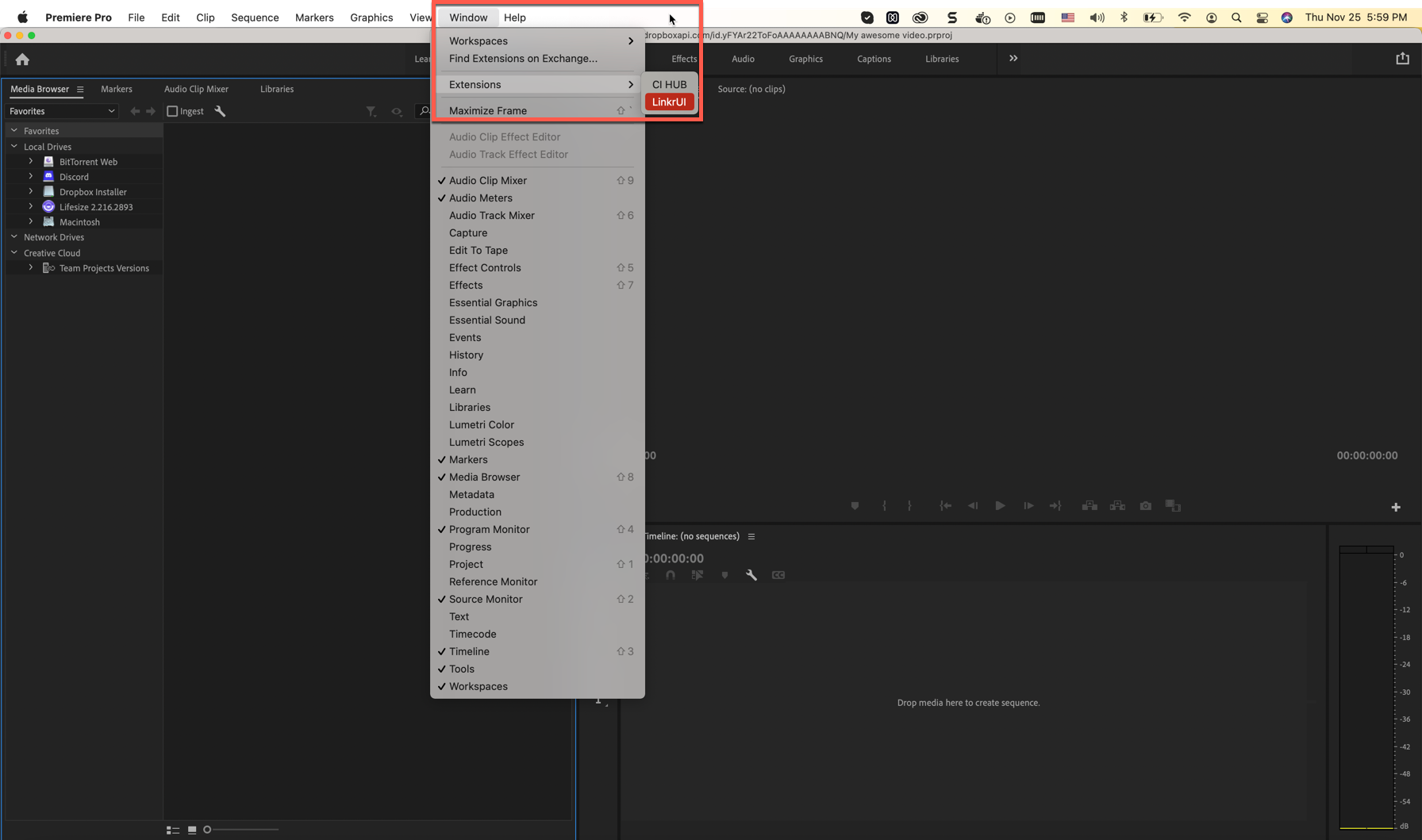 Within Adobe Premiere Pro or Adobe After Effects go to Windows > Extensions, and click on LinkrUI.