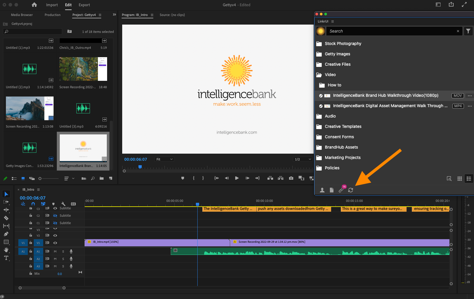 The connector also automatically synchronizes images between Adobe Premiere Pro, Adobe After Effects and IntelligenceBank.