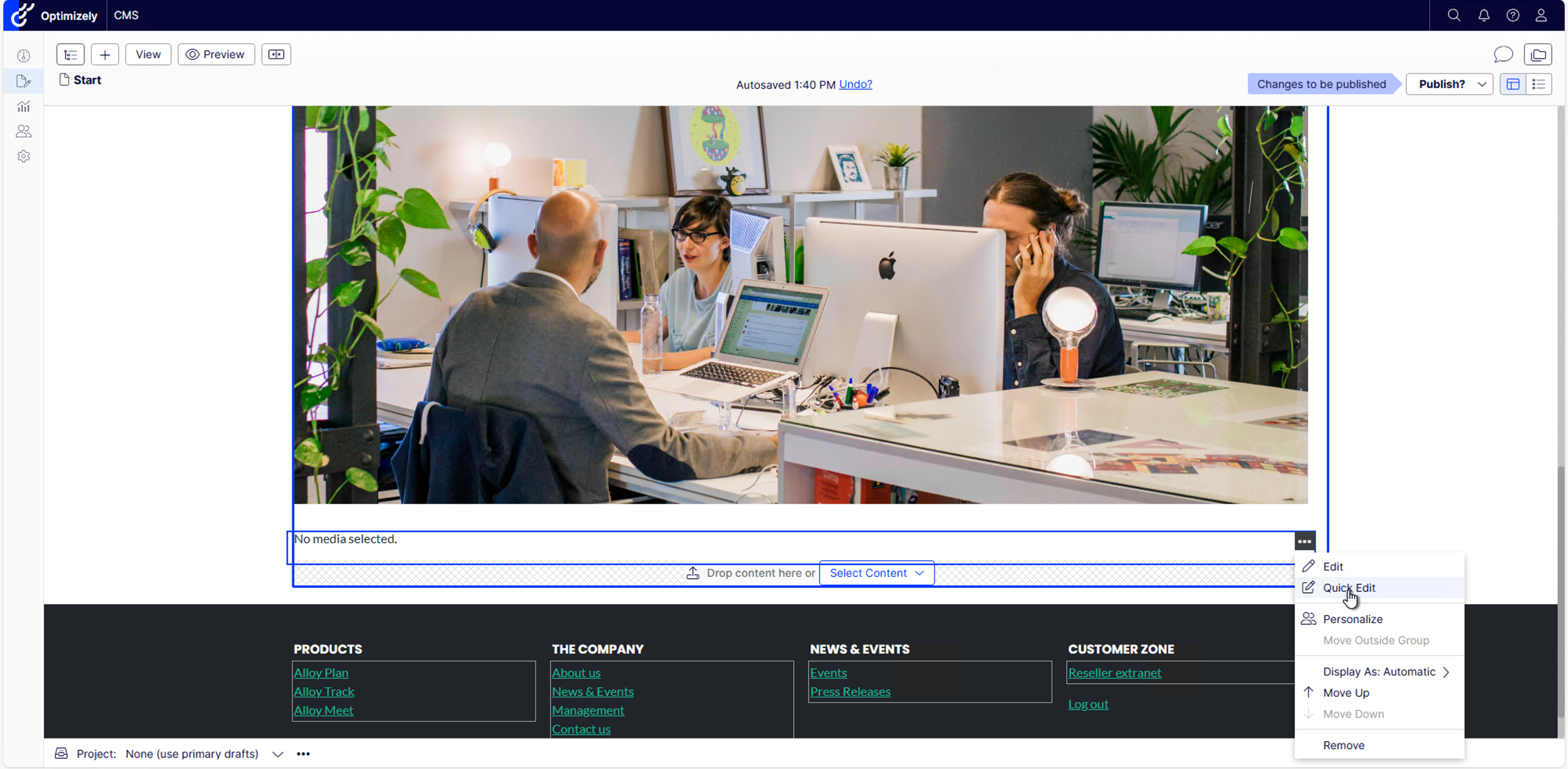 The IntelligenceBank Connector for Optimizely CMS 12 makes it easy for users to browse, search and insert their approved IntelligenceBank assets as Public CDN links or local copies, either as a dedicated custom assets block, or directly from within Optimizely CMS 12's Editorial content block (legacy version).
