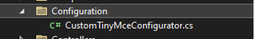Under 'Configuration', verify that a file 'CustomTinyMCEConfigurator.cs' is present.