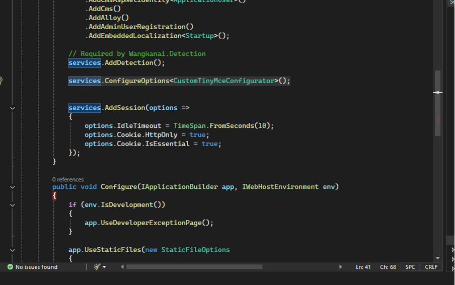 Next, add the following code to the Configuration function of the file "Startup.cs", which will allow for the plugin to load: