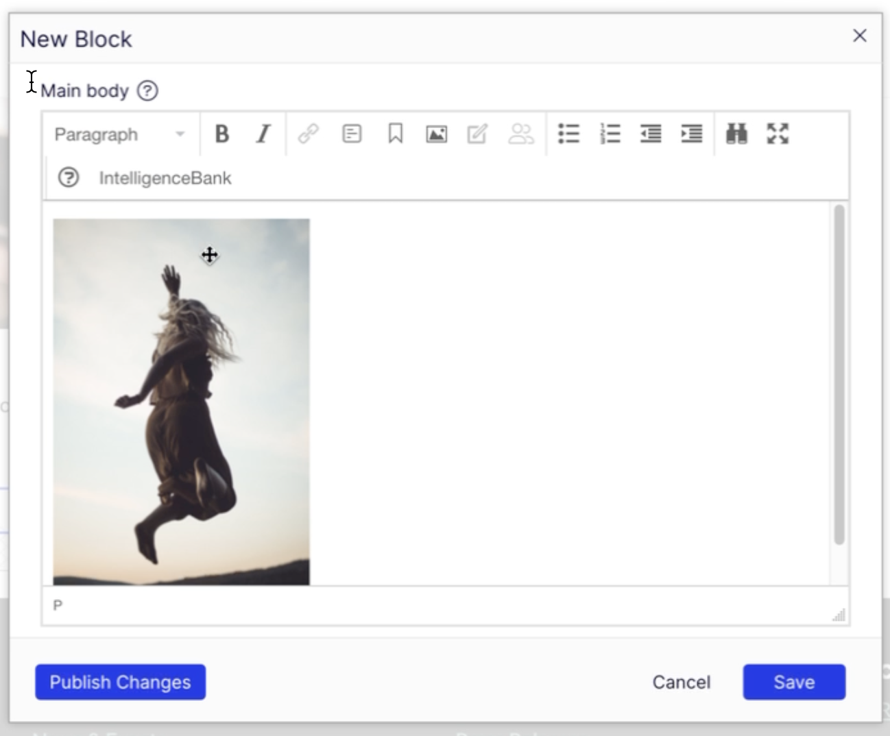 - Once the block has been added to your page, click edit to load it. You will then be able to login to your IntelligenceBank platform, browse, search and insert media assets. Note that multiple assets can be inserted against the same block.