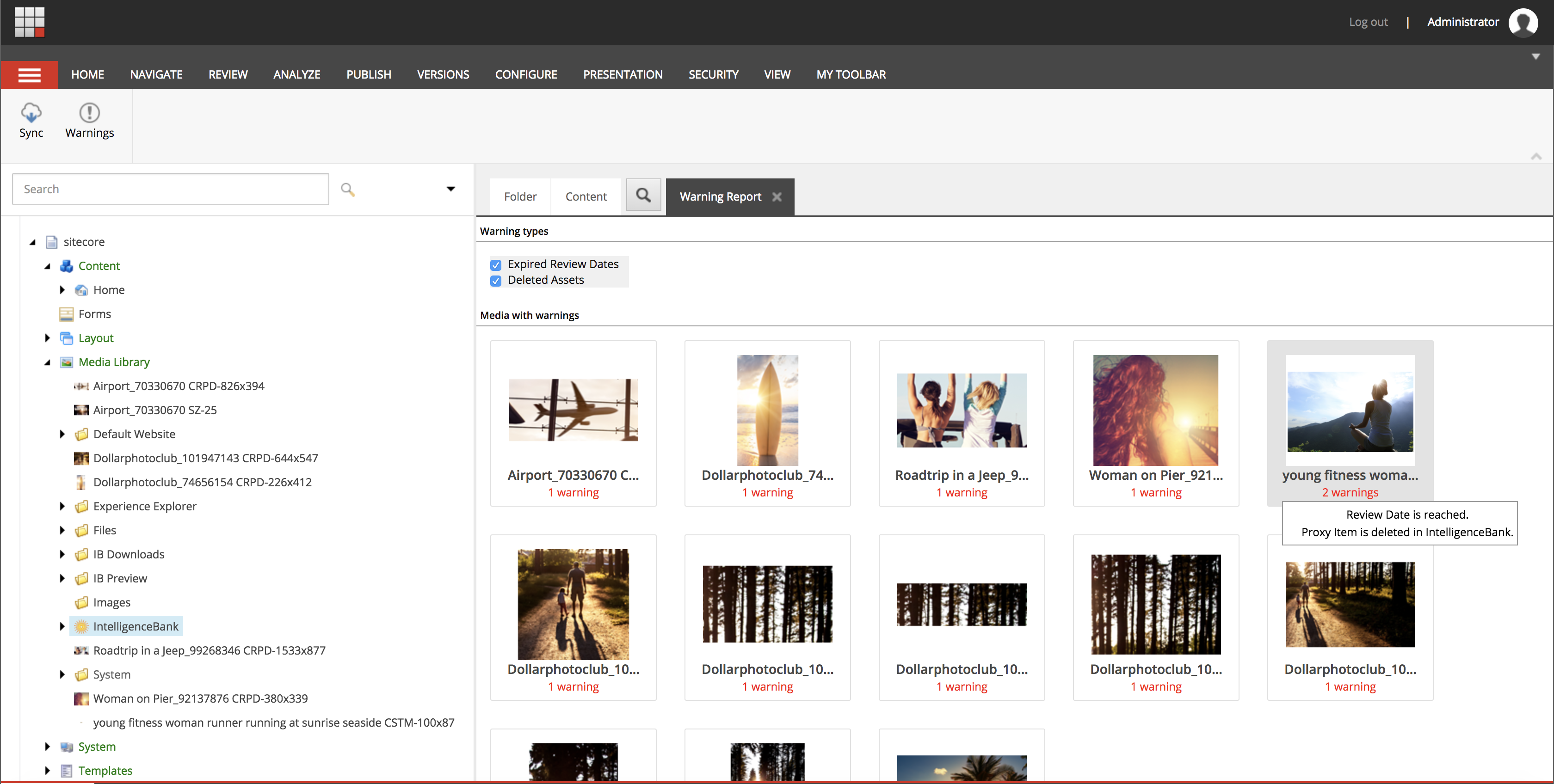 - Run a report of the assets that have been downloaded from IntelligenceBank into Sitecore CMS and are either expired or deleted on IntelligenceBank. This makes it easy to track and remove expired assets from web pages where they are in use. NOTE: New versions or updates of asset files are not specifically tracked currently.