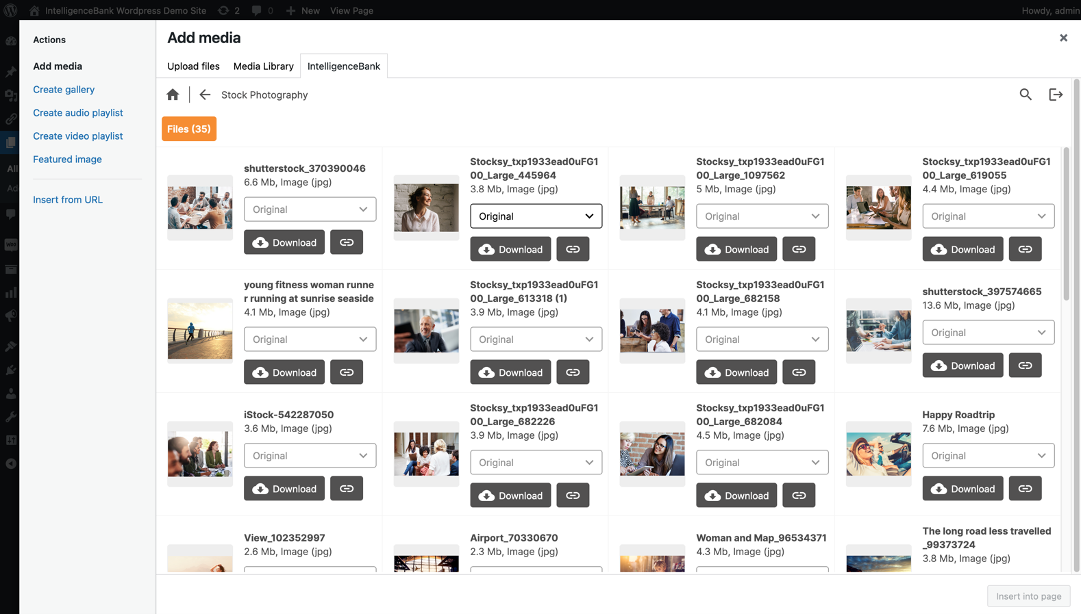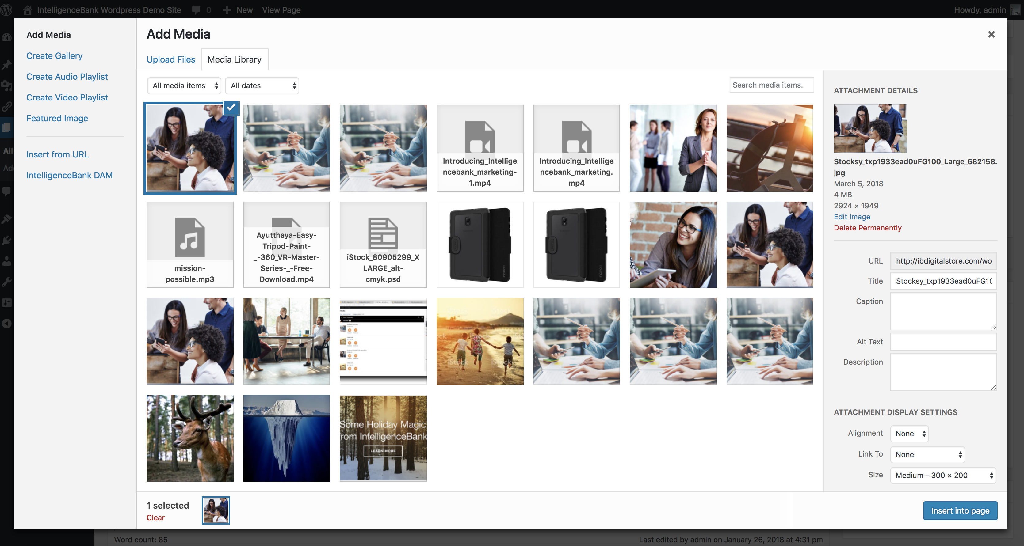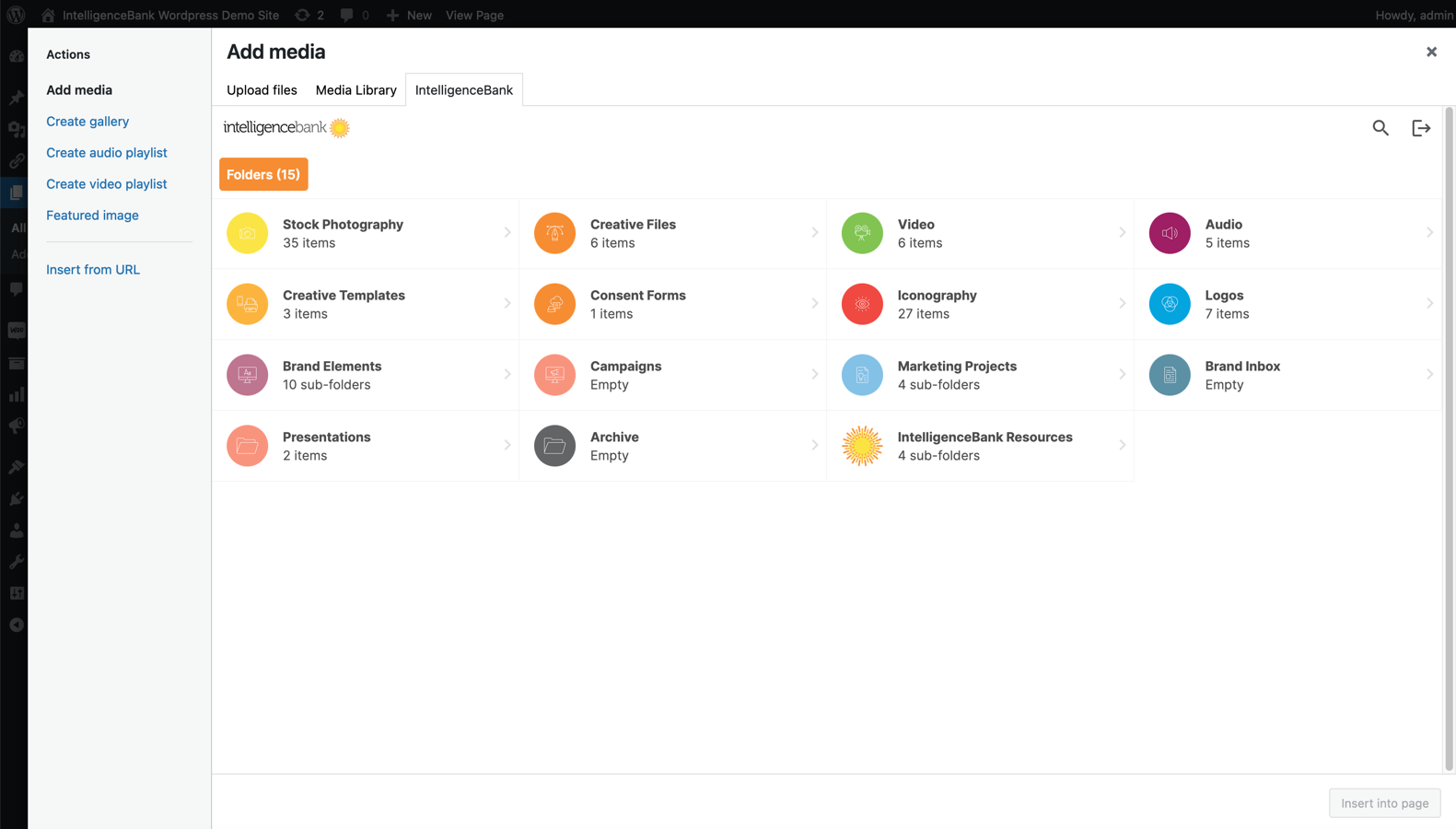 The IntelligenceBank Assets Connector for WordPress lets users connect to their IntelligenceBank platform directly from within the Wordpress Media management interface.