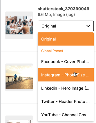 For both Download and Public Link (when supported), you can select a Global or Single Preset if available against the image.