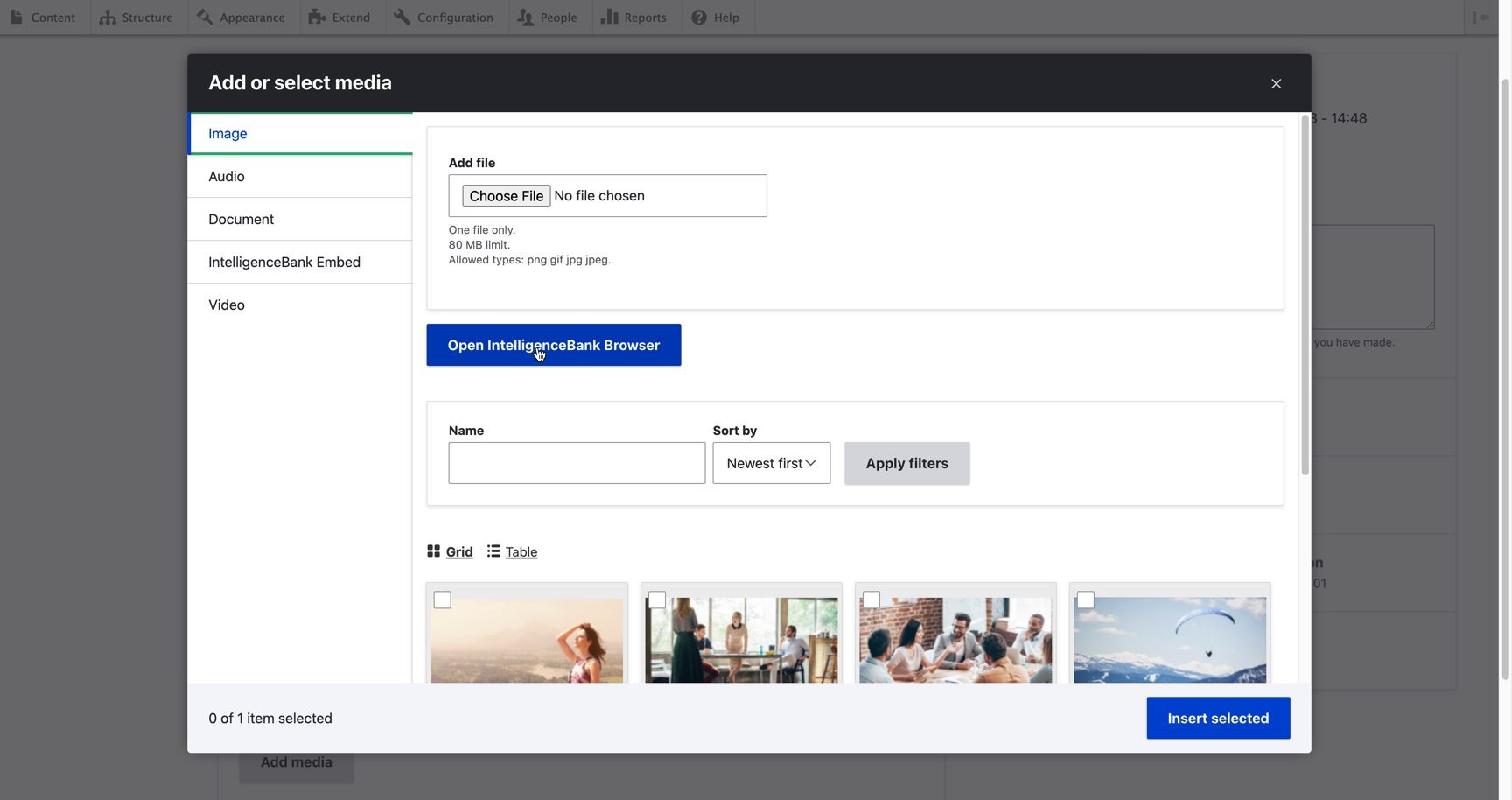 The IntelligenceBank Connector is built on top of Drupal's core Media Library module. As such, the option to access IntelligenceBank DAM assets will appear wherever that module is used, either as an Entity reference, or within the rich-text editor (CkEditor 5).