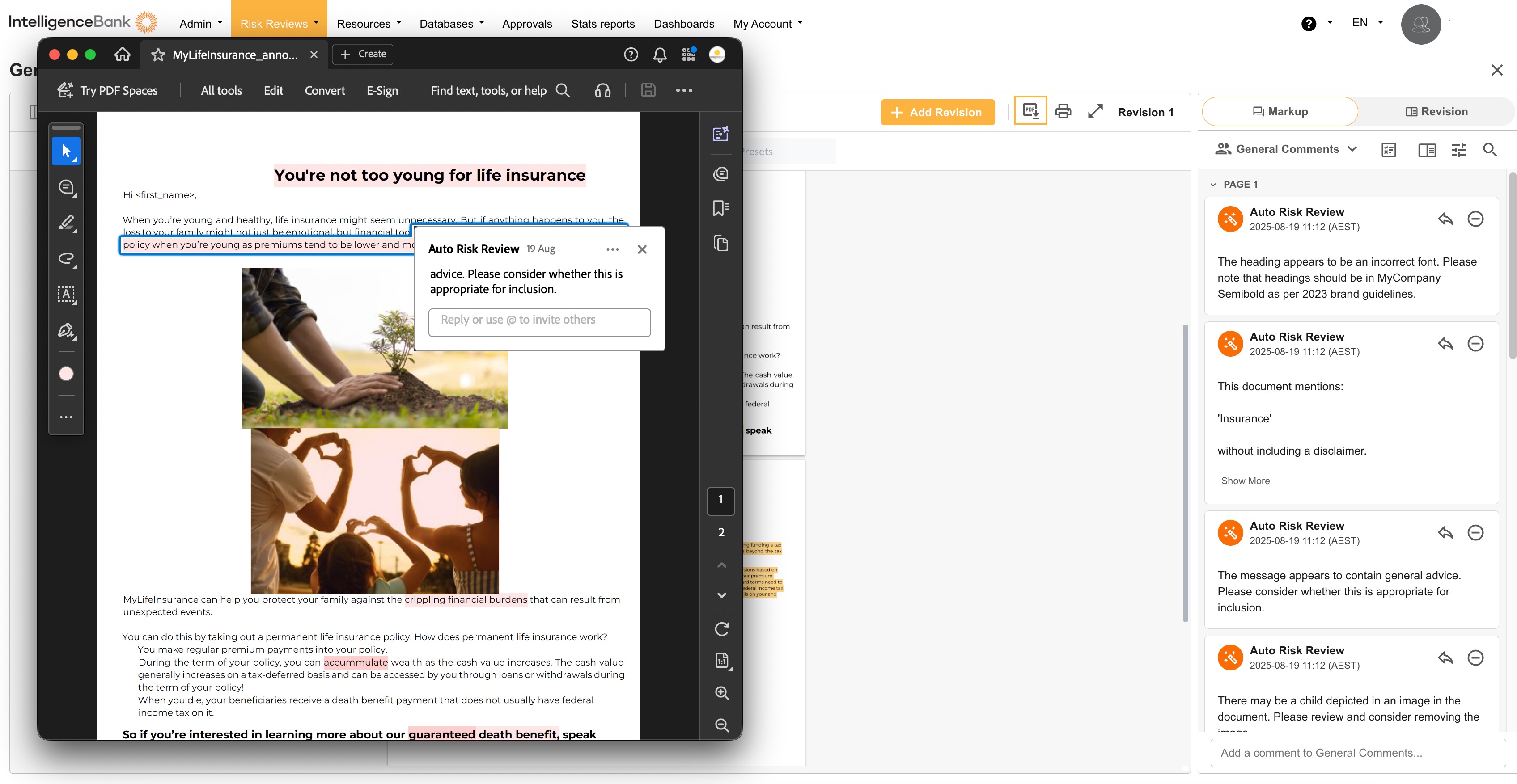 - A/V Transcript Risk Reviews enable marketing teams to review the words spoken in video and audio content for legal, compliance and brand risks.