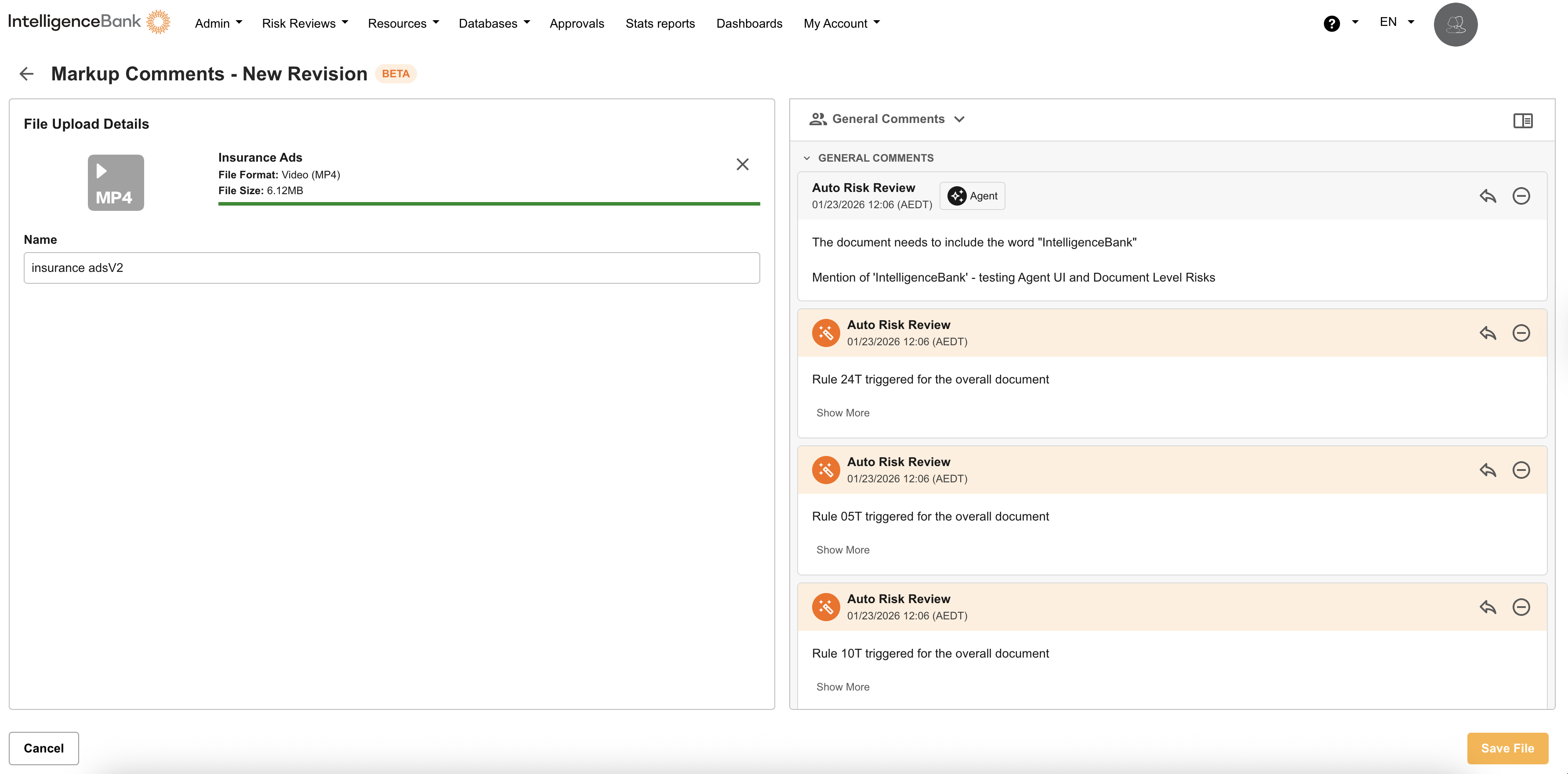 This guide provides detailed instructions for uploading, managing, and tracking revisions of audio and video files in Marketing Compliance.