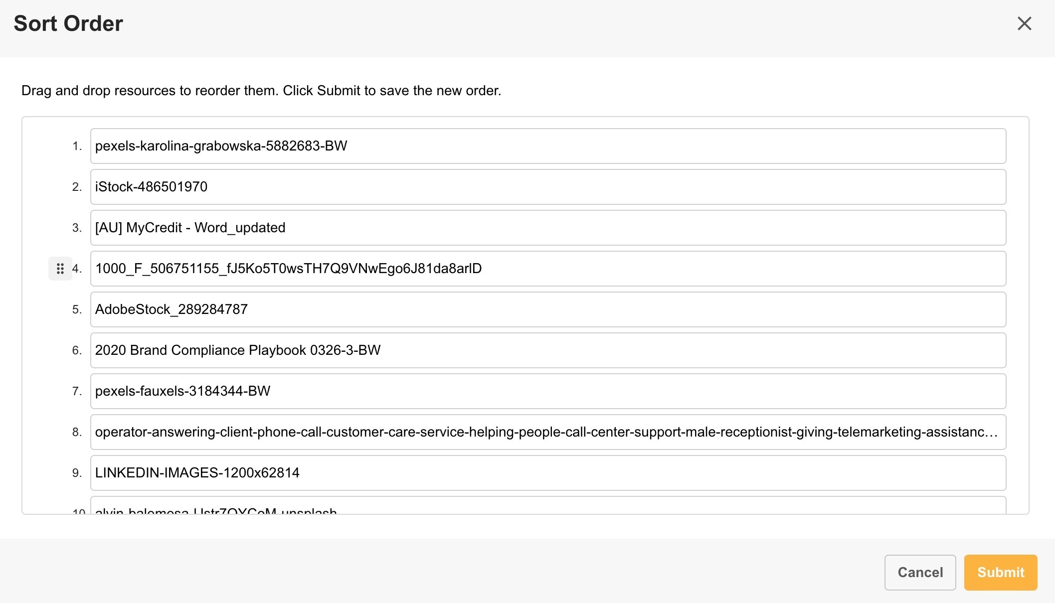 Note: Custom Sort Order is only available for folders containing a maximum of 150 assets.