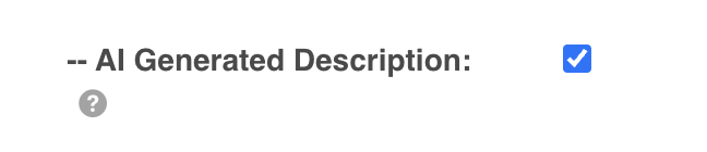 - Scroll down to the field called, "AI Generated Description" and select the checkbox to enable.