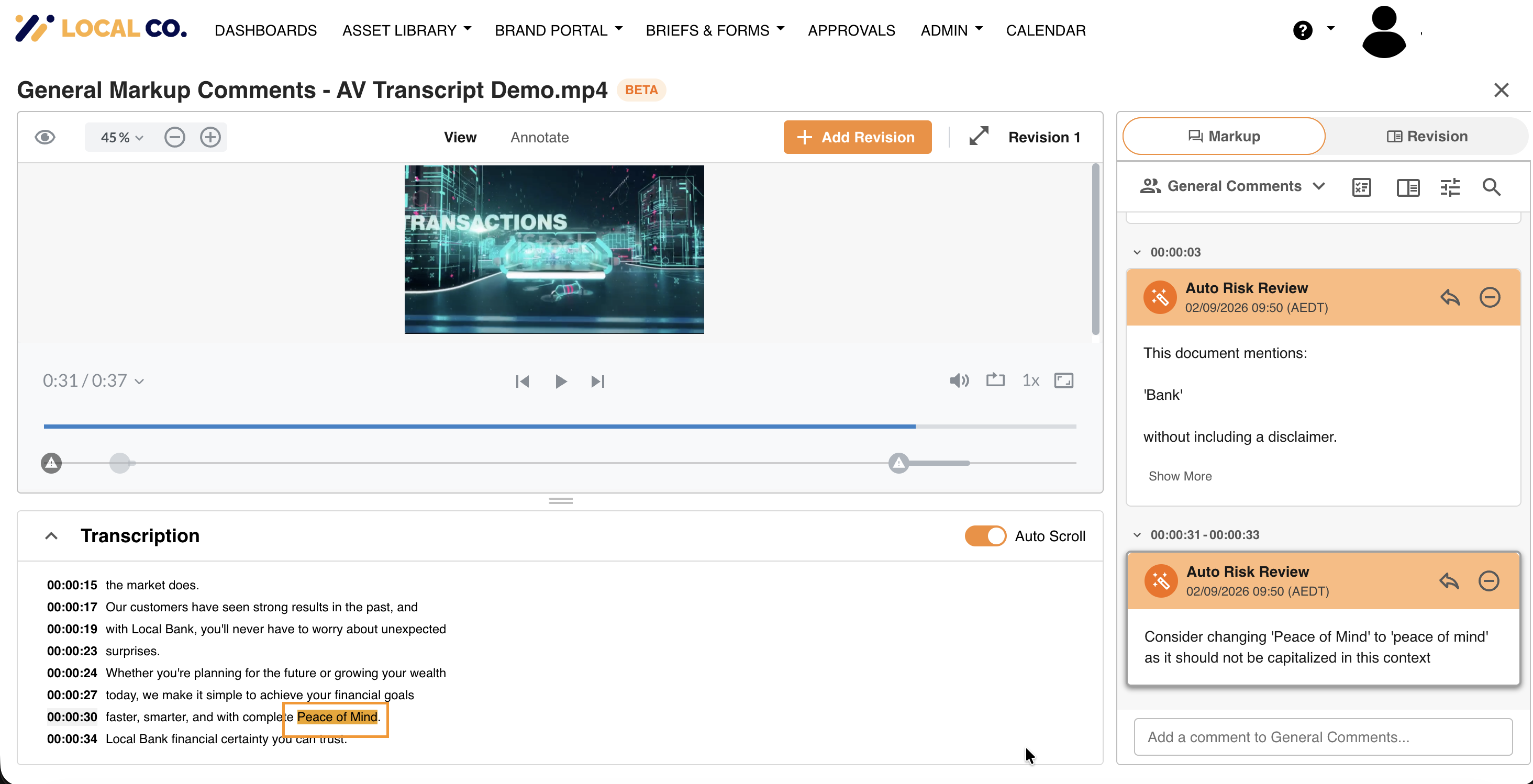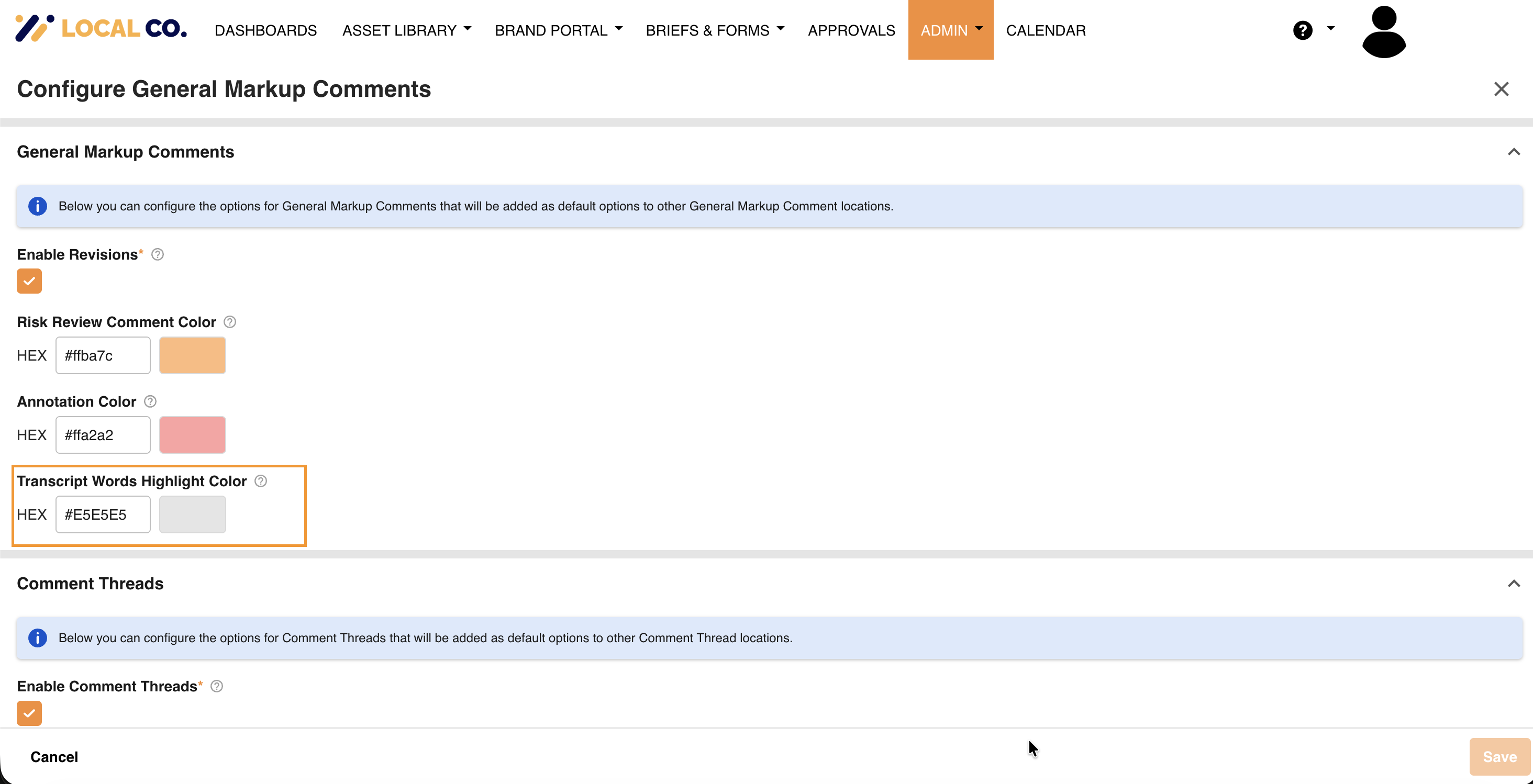 You can customise the highlight colour used to flag risky words found in your audio and video transcriptions. This customisation allows your team to choose a colour that best suits your brand or workflow preferences.